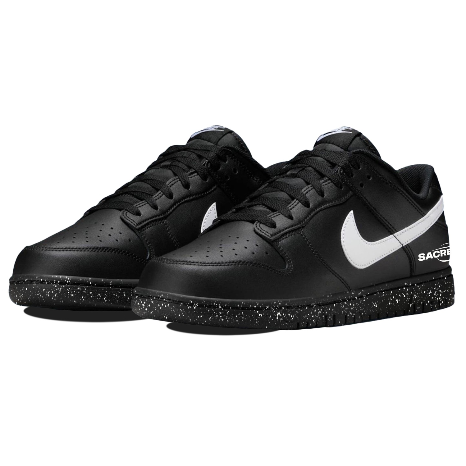 Эти кастомные кроссовки основаны на оригинальной мужской и женской модели Nike Dunk Low-Top. Классическая черно-белая расцветка обеспечивает превосходный комфорт, а белый свуш и логотип «SACRED» привносят модный штрих. Крапчатая подошва добавляет изюминку. Ретро-силуэт гармонично сочетается с уличным стилем, предлагая универсальность для повседневной носки и демонстрируя уникальный и нишевый подход к моде - эффектная модель, сочетающая качество и индивидуальность.