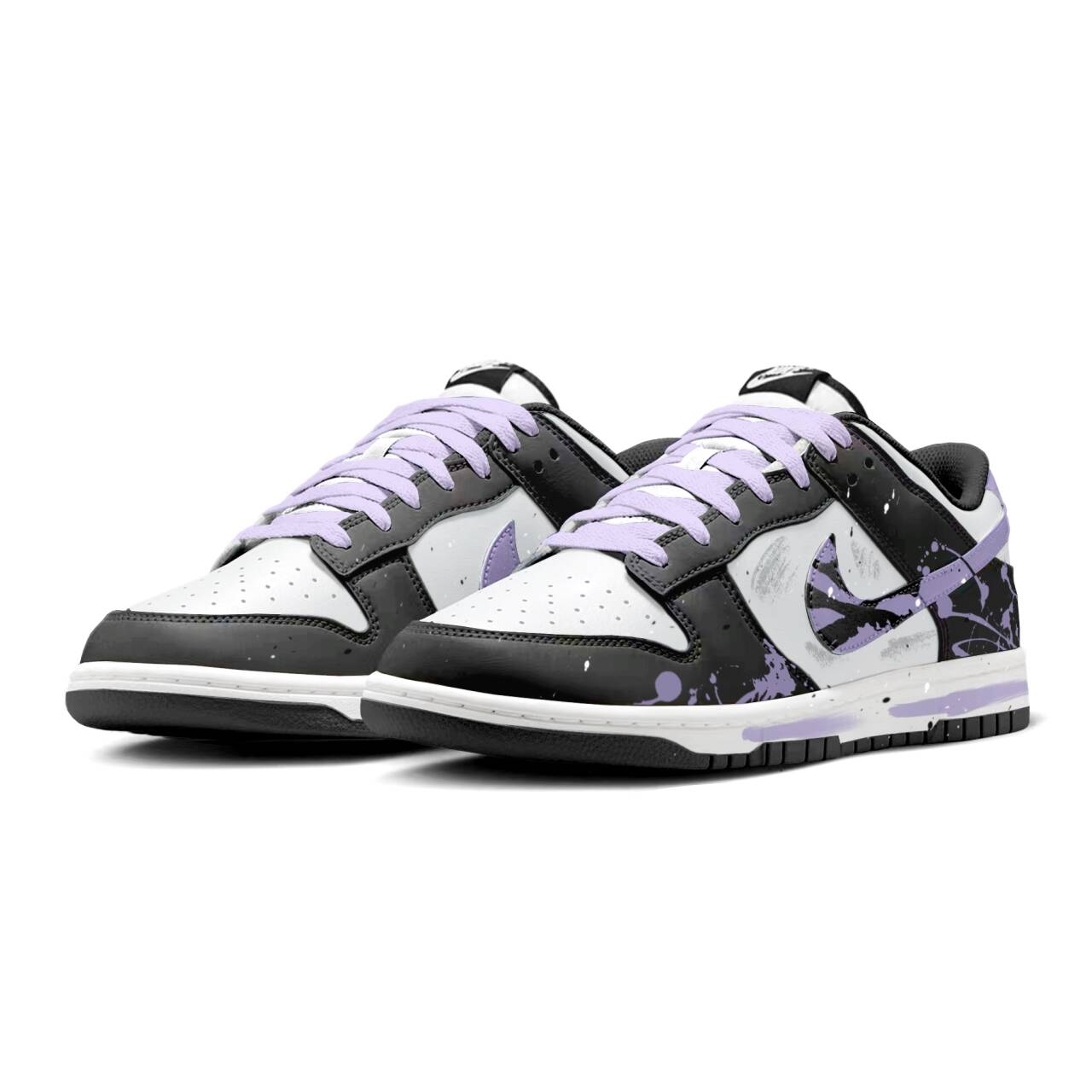 Эти кроссовки изготовлены на основе оригинальных кроссовок Nike Dunk с удобной, тонкой подошвой, нескользящей подошвой и прочным низким верхом в унисекс-бело-черной расцветке. Также включены дополнительные артикулы DD1503-101, CW1590-100, DD1391-100 и FD6923-100. Дизайн выполнен вручную и методом распыления краски по оригинальным цветам, создавая контраст между цветами и белым, что в итоге дает модный и стильный дизайн.