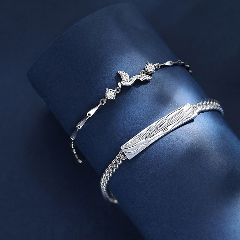 Цвет: Белое золото (парный браслет с синим эвкалиптом и птицей + подарочная коробка)