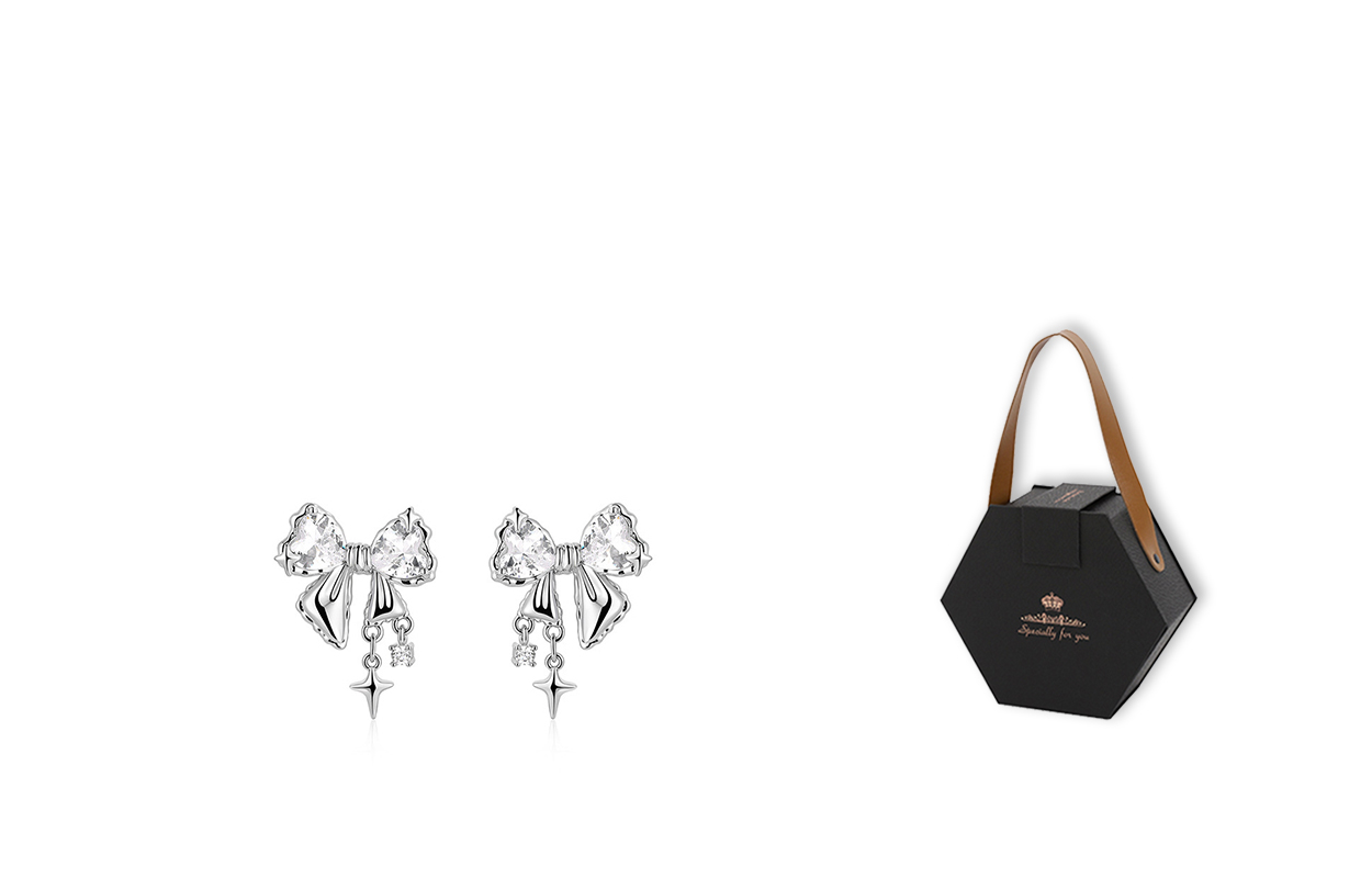 Цвет: Серьги-гвоздики в форме банта + эксклюзивная черно-золотая подарочная коробка