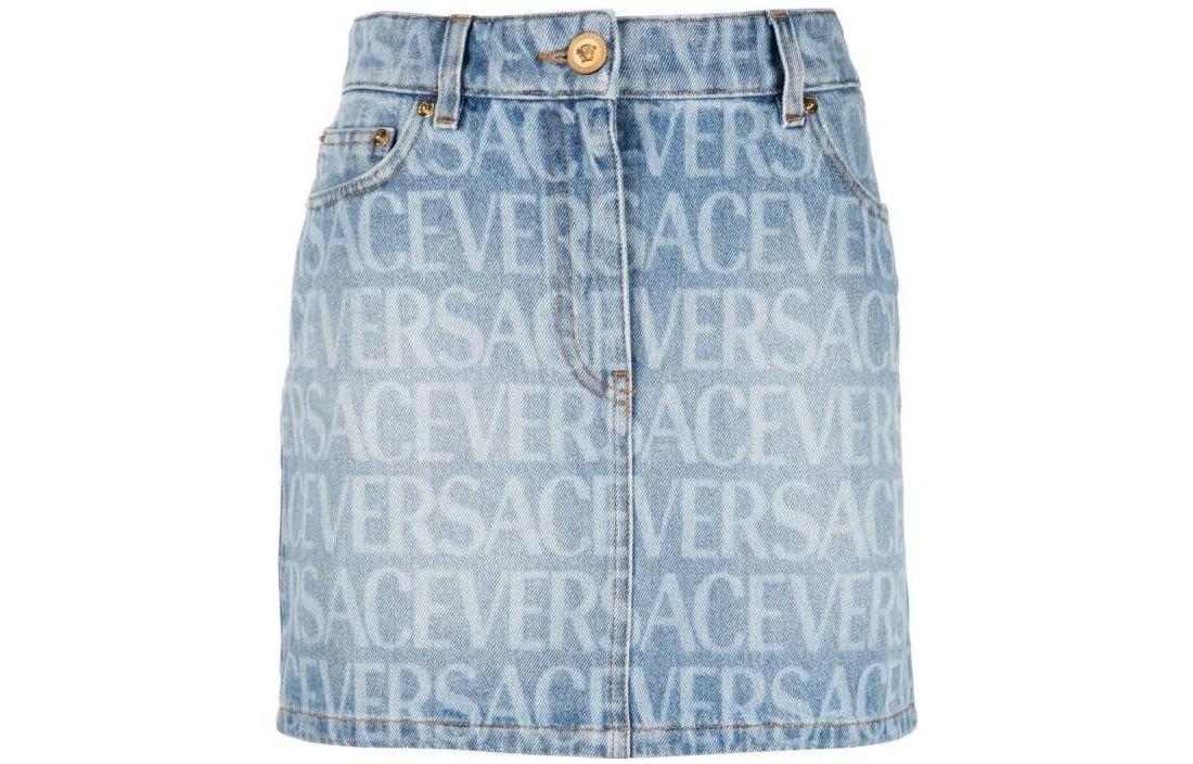 Джинсовая мини-юбка с принтом логотипа VERSACE, синий 28 834₽