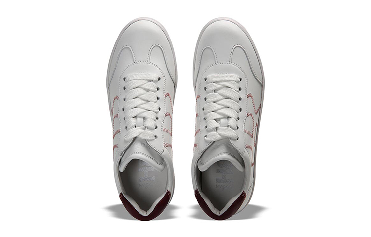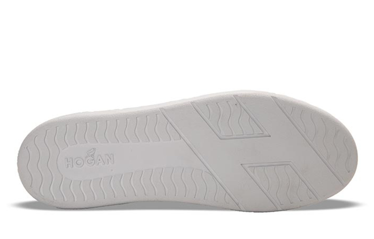 Низкие повседневные кеды из кожи HOGAN, белая резиновая подошва, круглый носок, плоский каблук, верх из белой кожи с кожаными вставками.