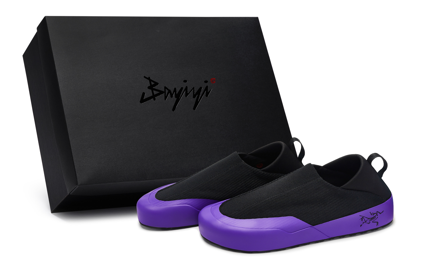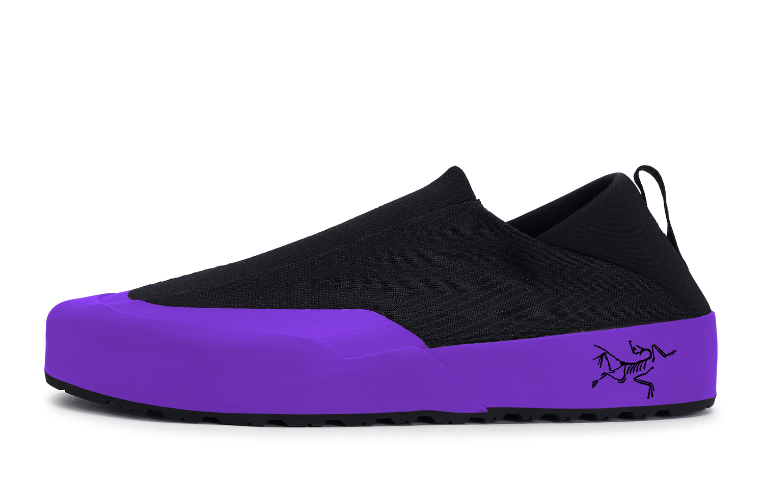 Эти кастомные кроссовки созданы на основе оригинальных мужских черных низких повседневных кроссовок Arcteryx KRAGG из ткани, резины и термополиуретана. Основной артикул - X000009017 - черный/черный, а дополнительный - X000010110 - черный/черный. Оригинальный дизайн кроссовок выбран случайным образом. Преобладающий черный цвет придает модели глубокий и таинственный вид. Фиолетовые акценты по бокам усиливают общую индивидуальность и подчеркивают детали.