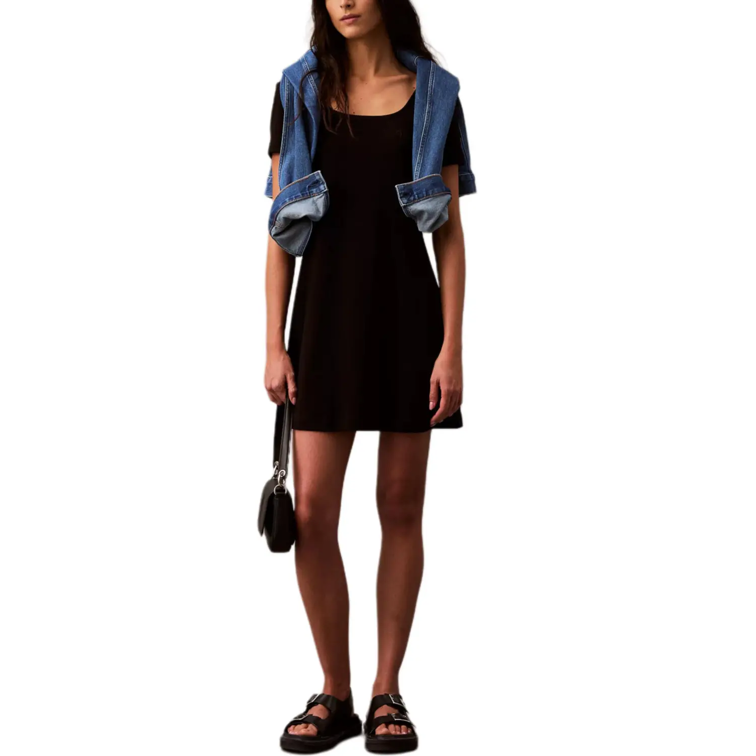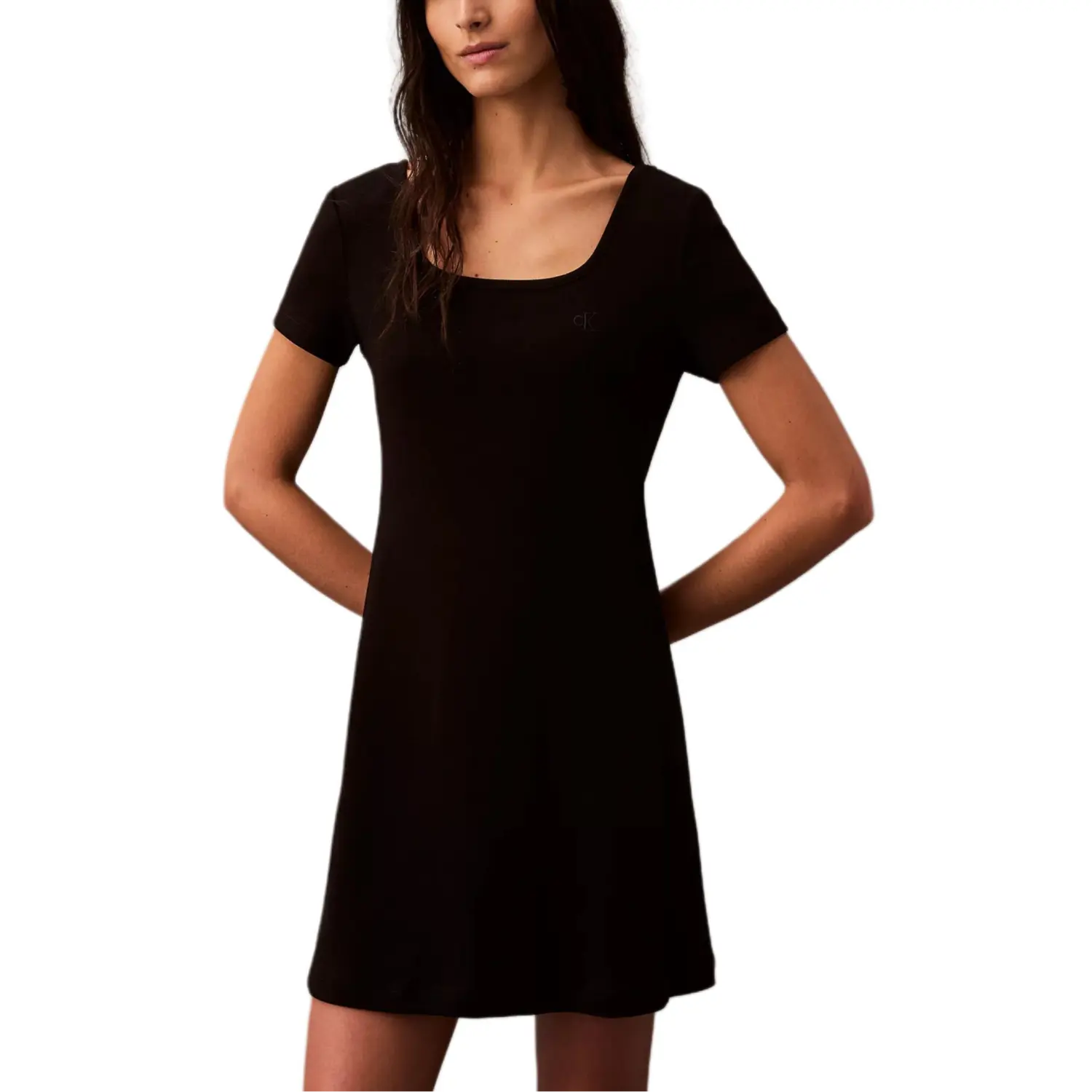 Calvin Klein Женское черное платье с коротким рукавом