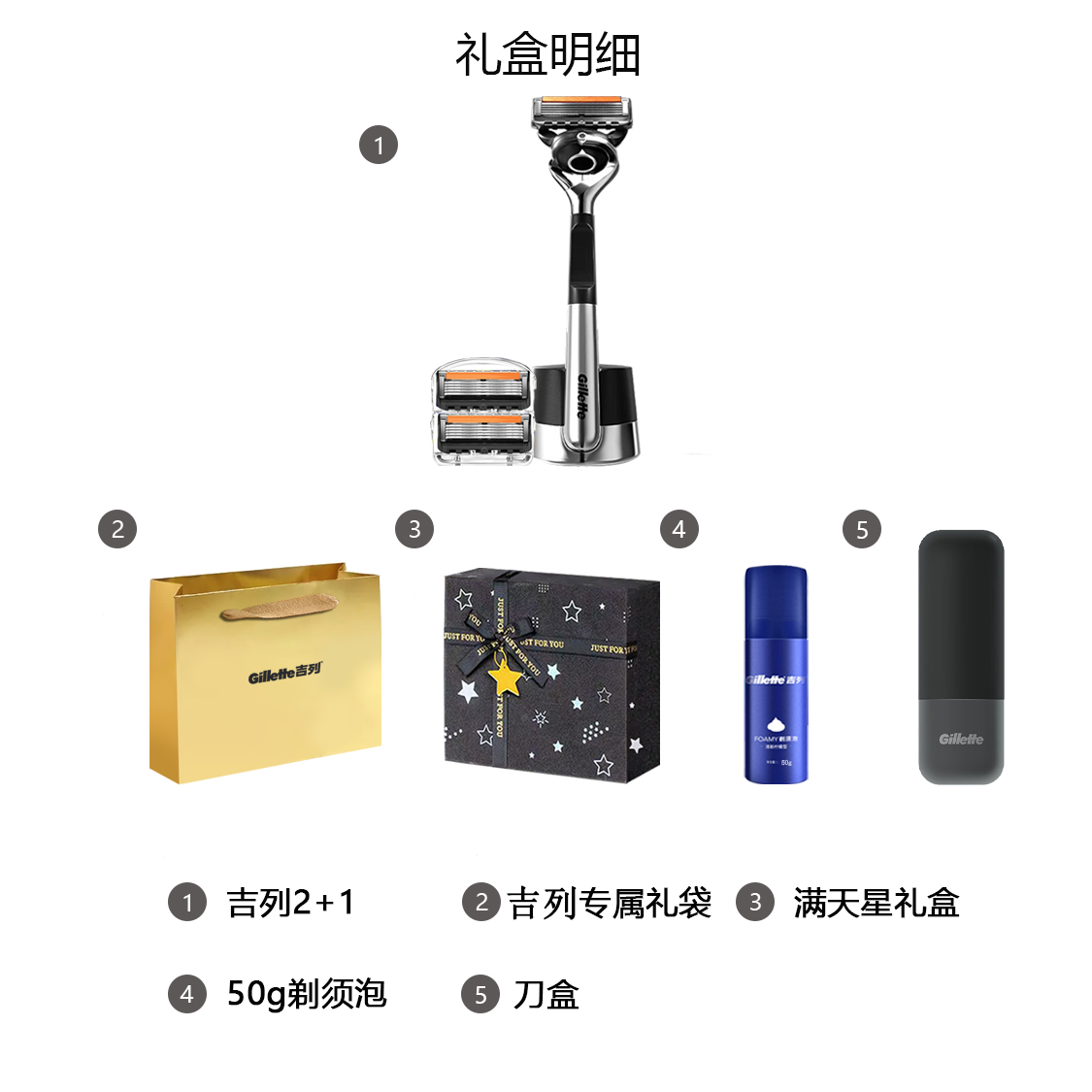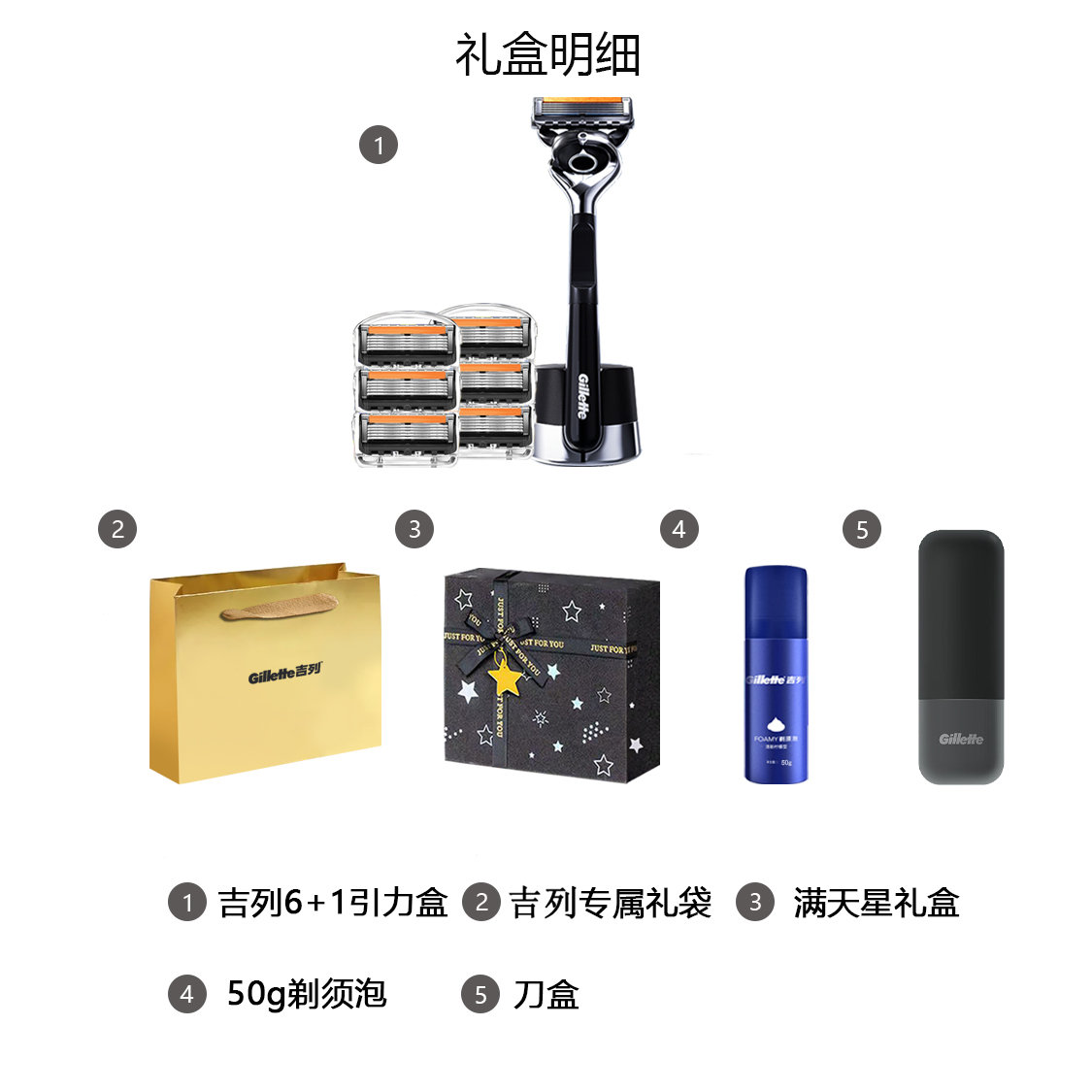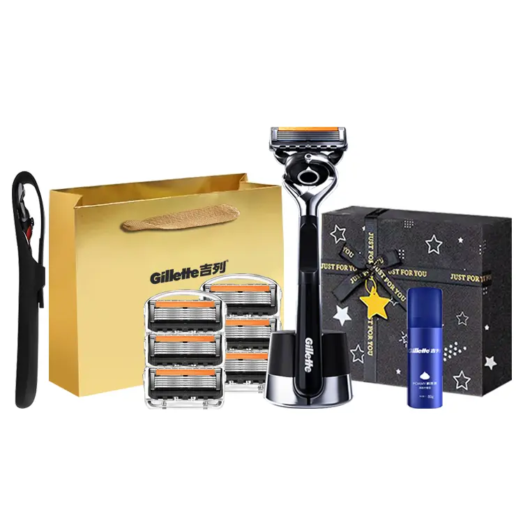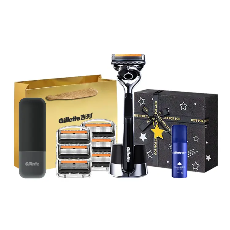 Версия: Gillette Gravity Box с 6 бритвенными головками + пена для бритья + чехол для лезвий + эксклюзивная сумка для покупок Gillette + коробка с детским бальзамом