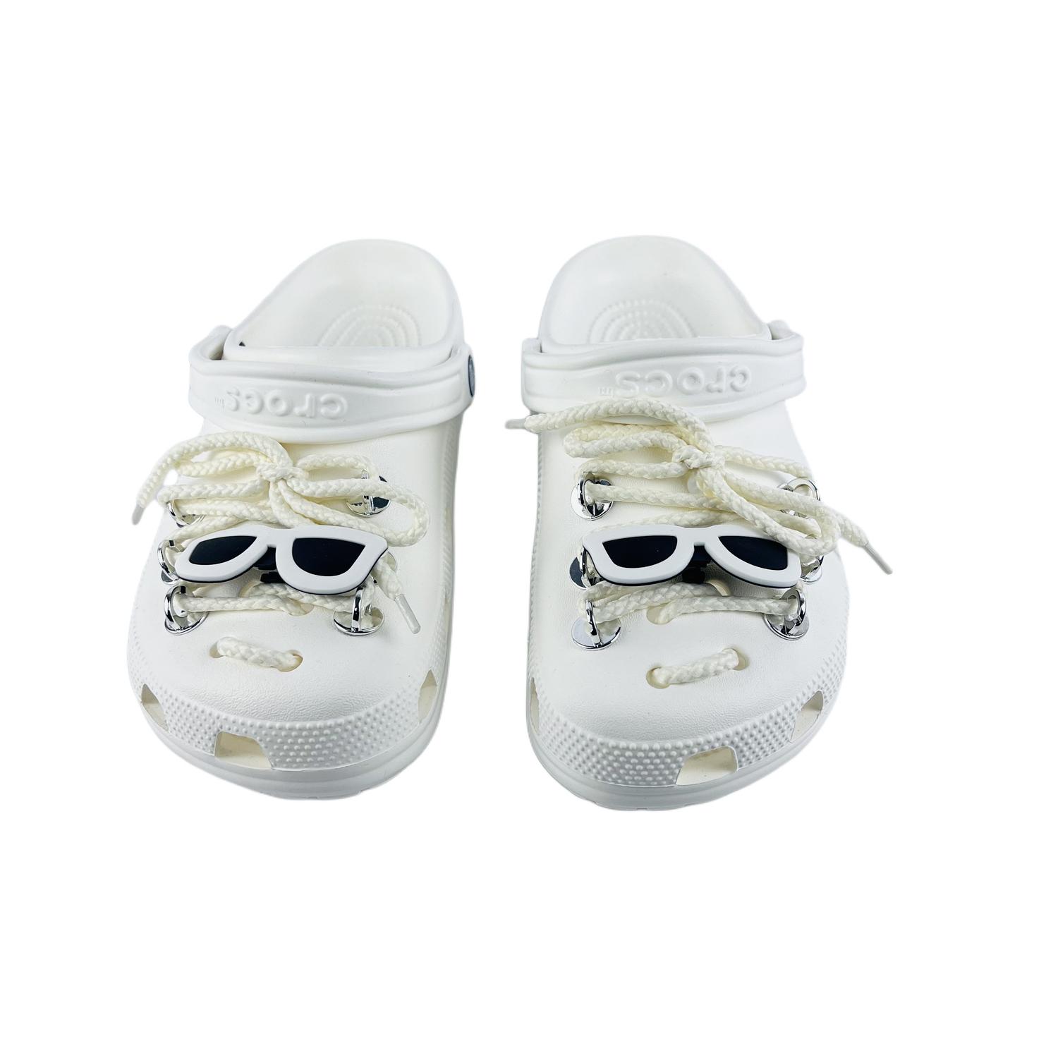 Эти туфли изготовлены на заказ на основе оригинальных пляжных сандалий Crocs Classic Clog EVA, унисекс, белого цвета. Дизайн вдохновлен игрушками. Эти туфли можно носить и стирать. Во время носки избегайте интенсивных физических нагрузок и царапин от острых предметов. Не используйте концентрированные органические растворители для чистки; вместо этого используйте мягкую щетку с подходящим моющим средством. На изображении представлен реальный товар; возможны небольшие отклонения в цвете. Вся обувь изготавливается вручную, и каждая пара может иметь небольшие различия.
