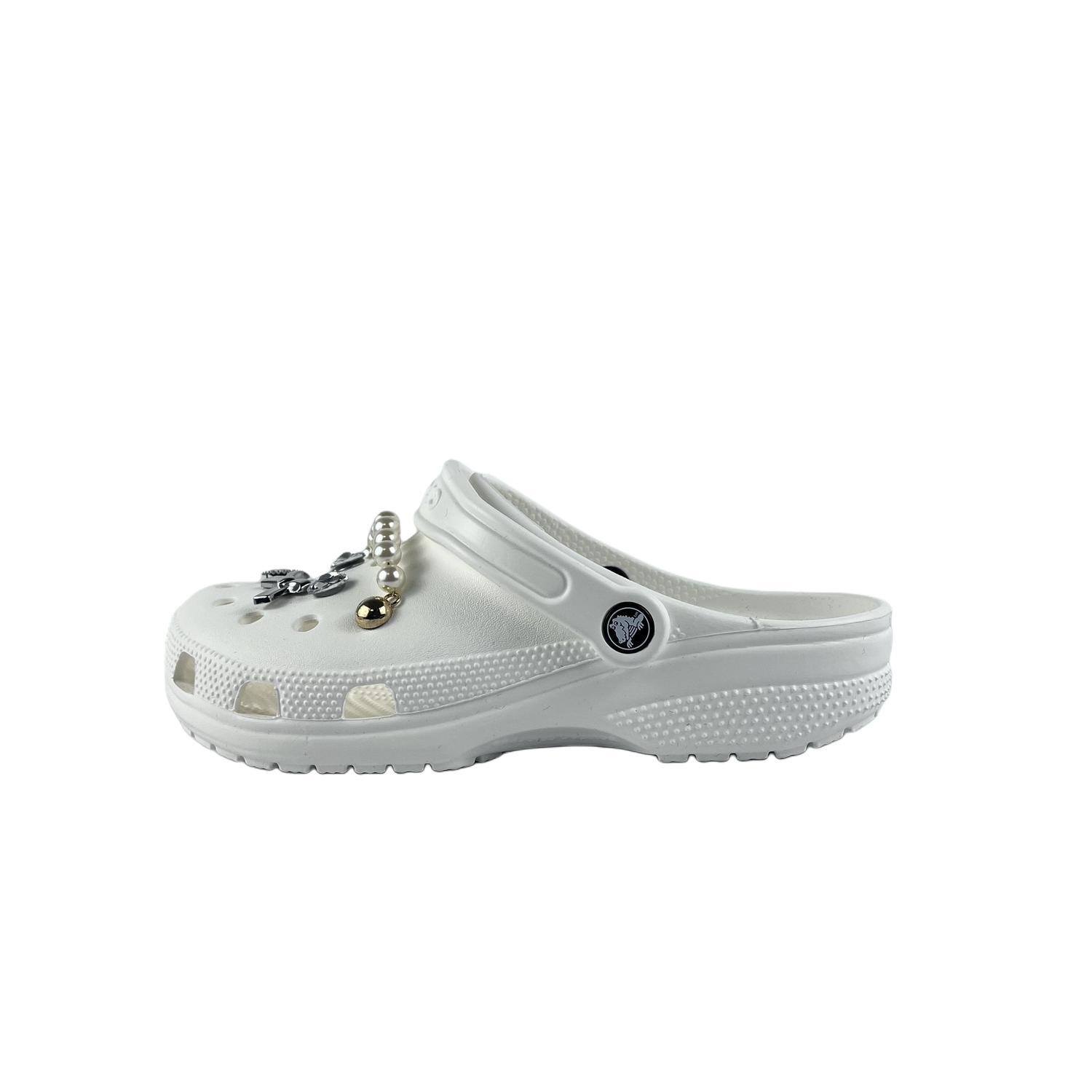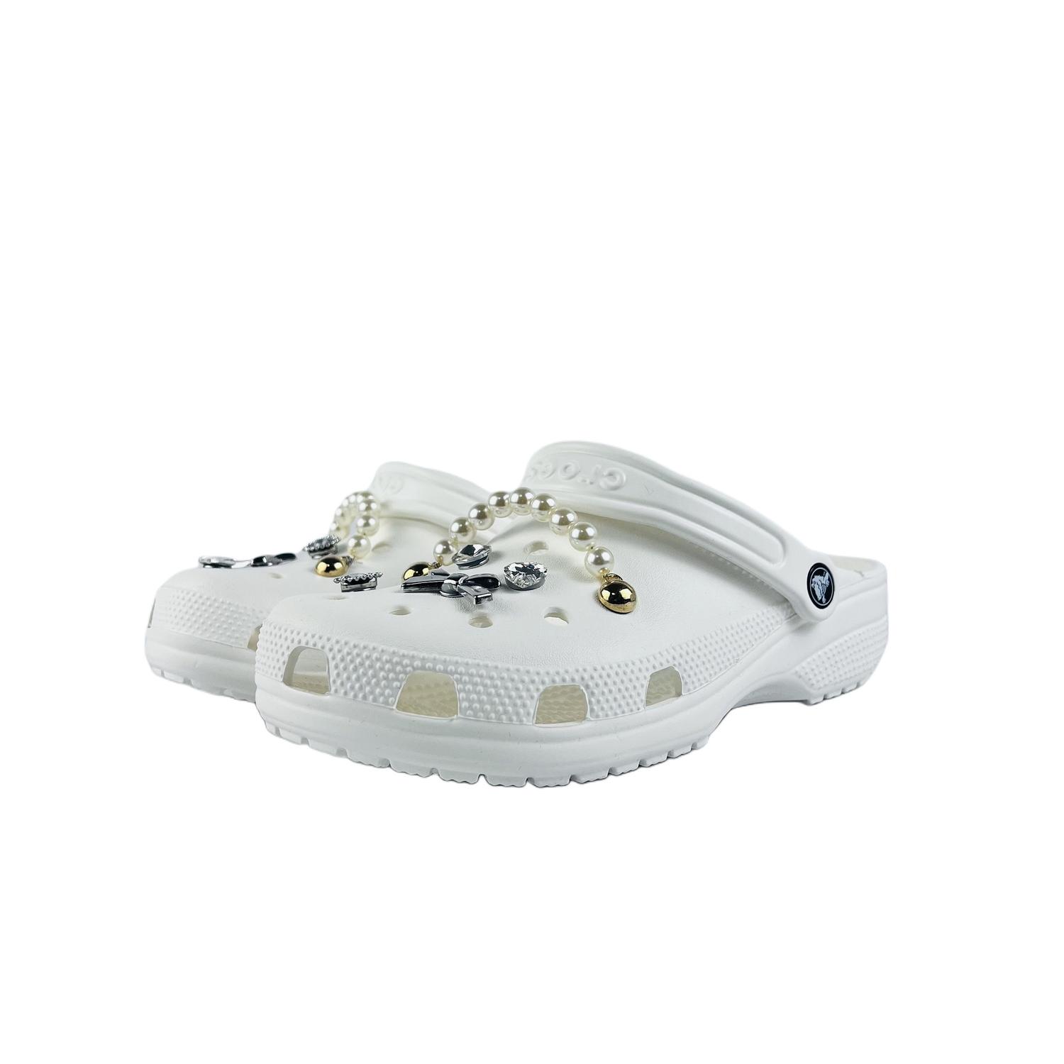 Эти туфли изготовлены из оригинальных Crocs Classic Clog EVA, белых пляжных сабо унисекс. Дизайн вдохновлен игрушками. Эти туфли безопасны для ношения и стирки. Во время носки избегайте интенсивных физических нагрузок и царапин от острых предметов. Не используйте концентрированные органические растворители для чистки; вместо этого используйте мягкую щетку с подходящим моющим средством. На изображении представлен реальный товар; возможны небольшие отклонения в цвете. Вся обувь, изготовленная на заказ, изготавливается вручную, и каждая пара может иметь небольшие различия.