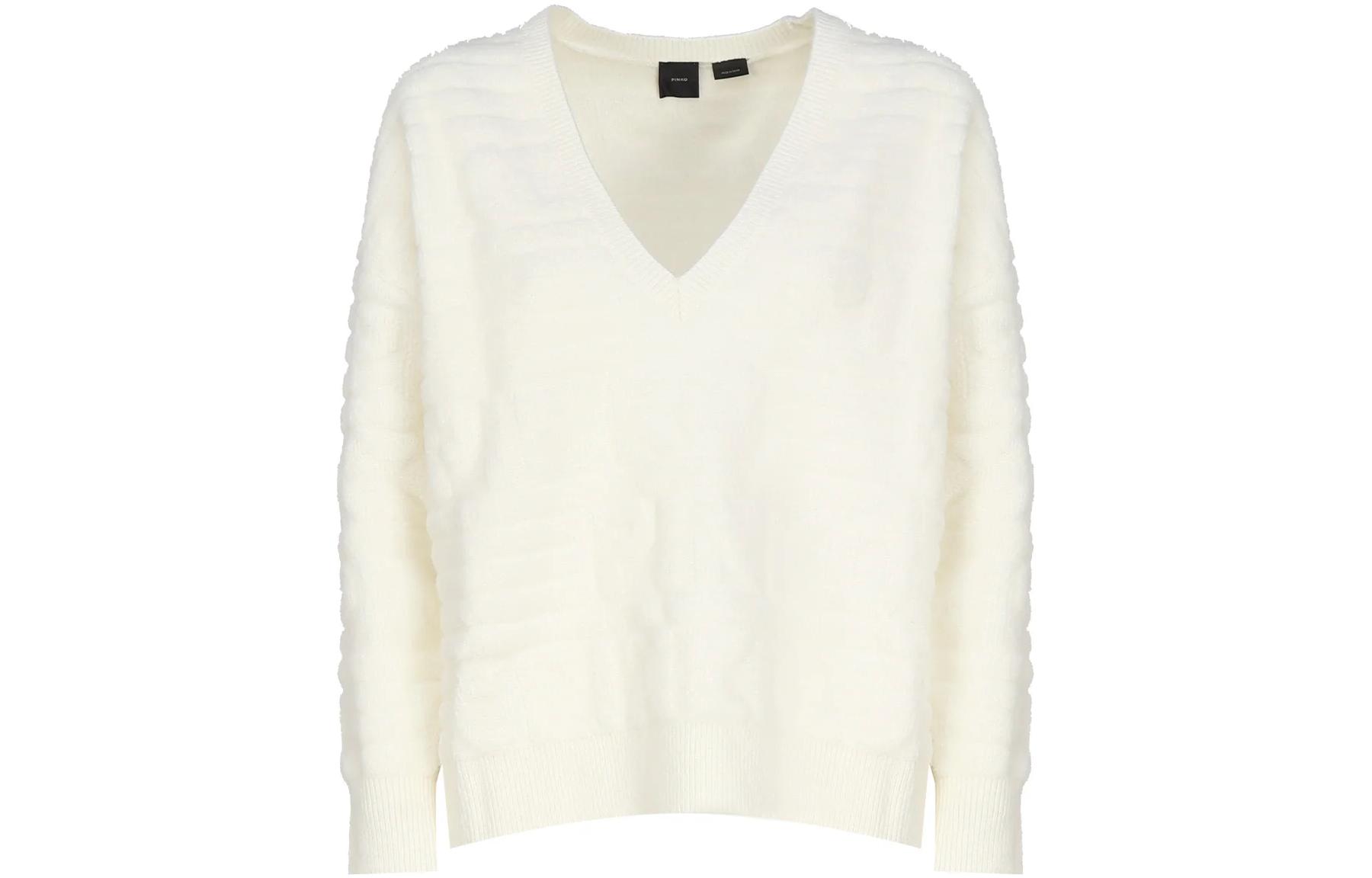 Джемпер с V-образным вырезом и интарсией PINKO, белый 11 523₽