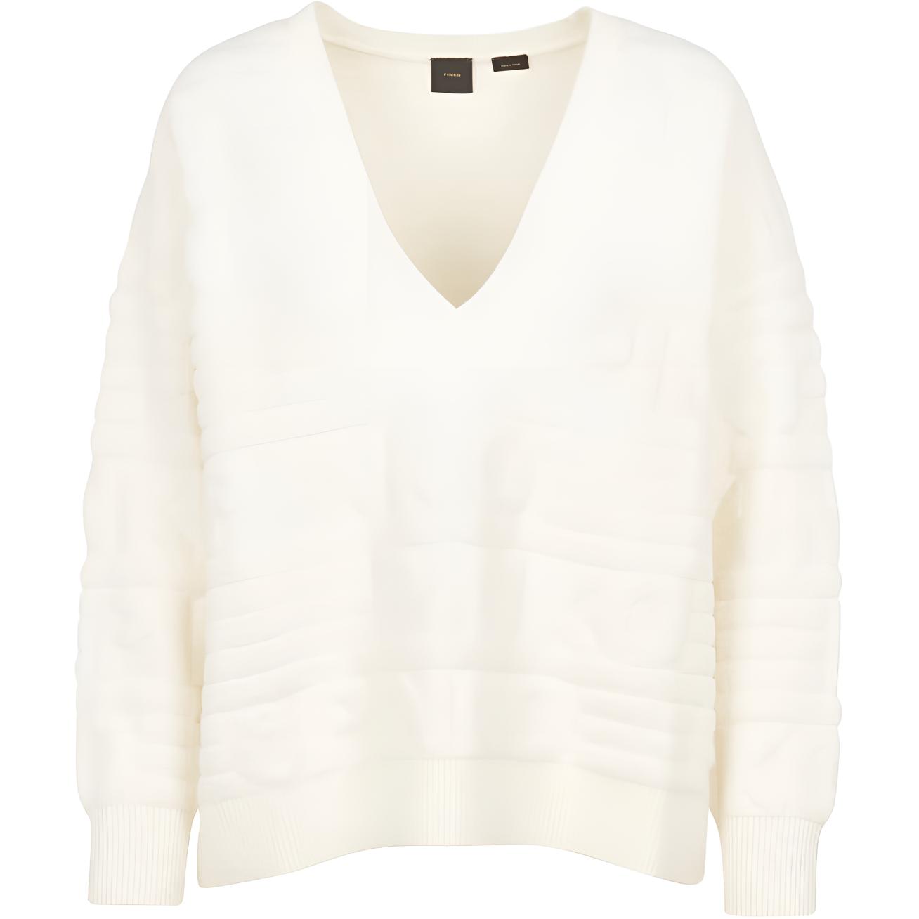 Джемпер с V-образным вырезом и интарсией PINKO, белый
