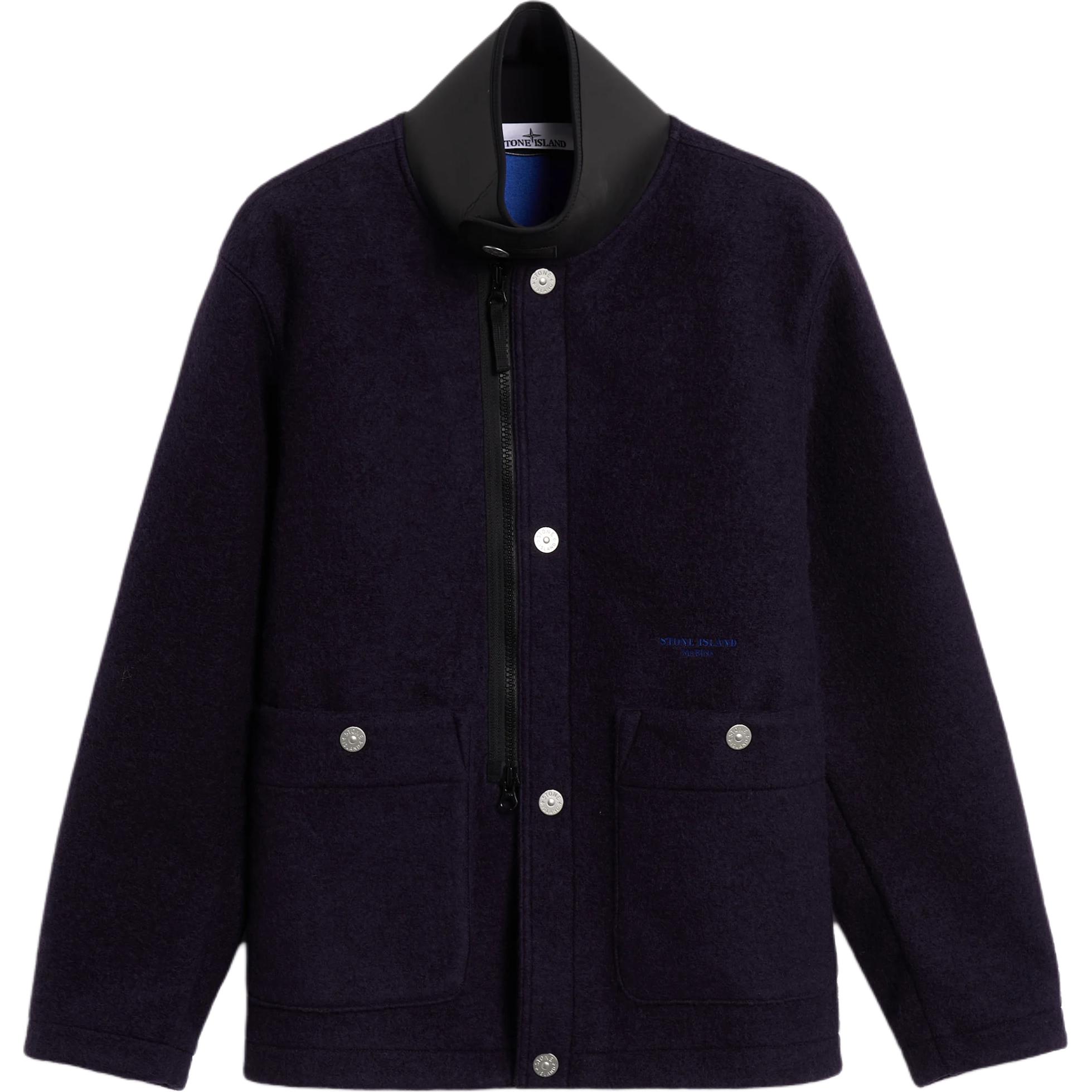 Кожаный воротник шерстяная куртка STONE ISLAND, синий