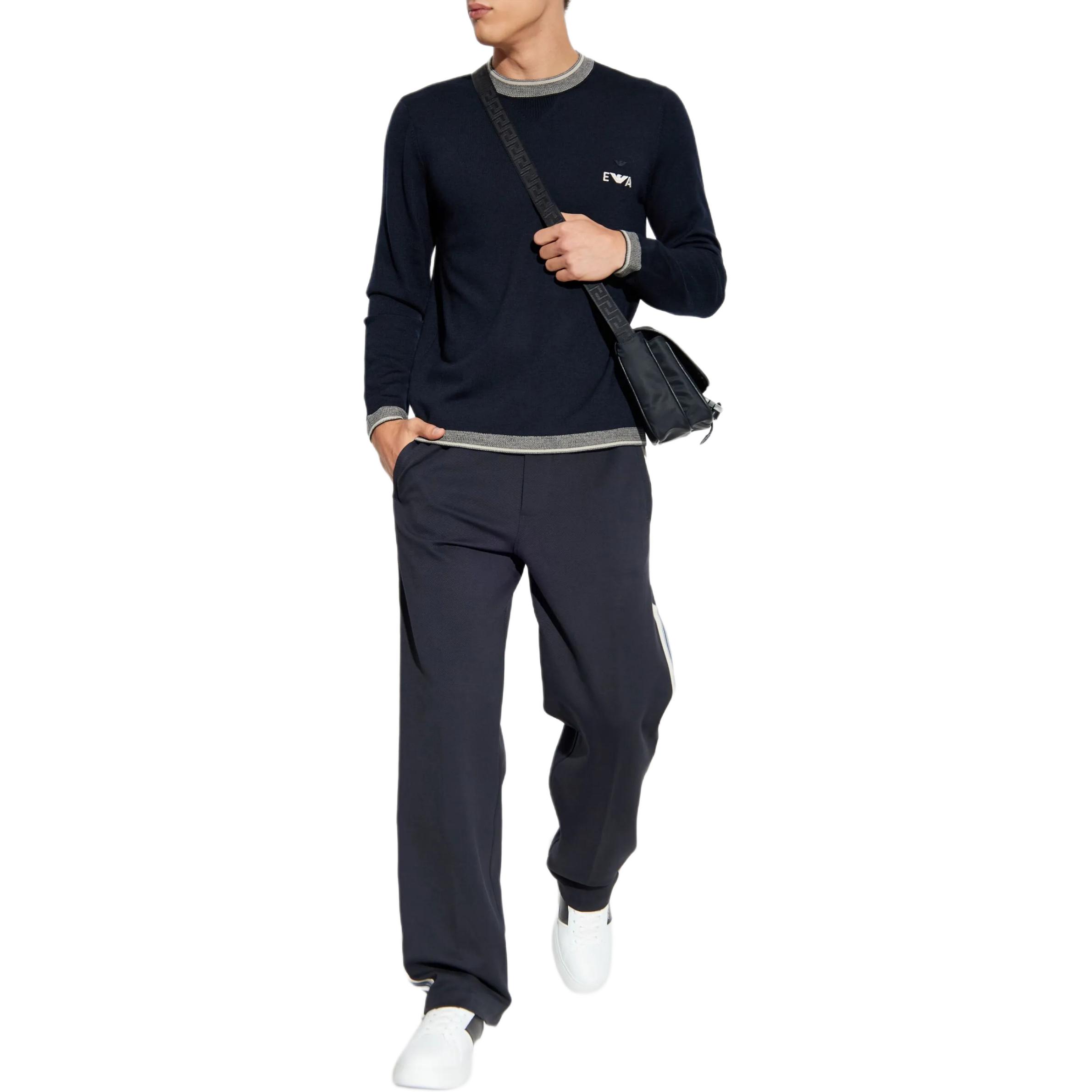Свитер Wool с вышитым логотипом EMPORIO ARMANI, синий