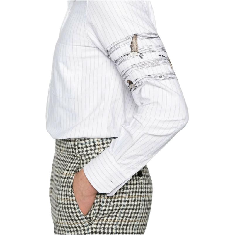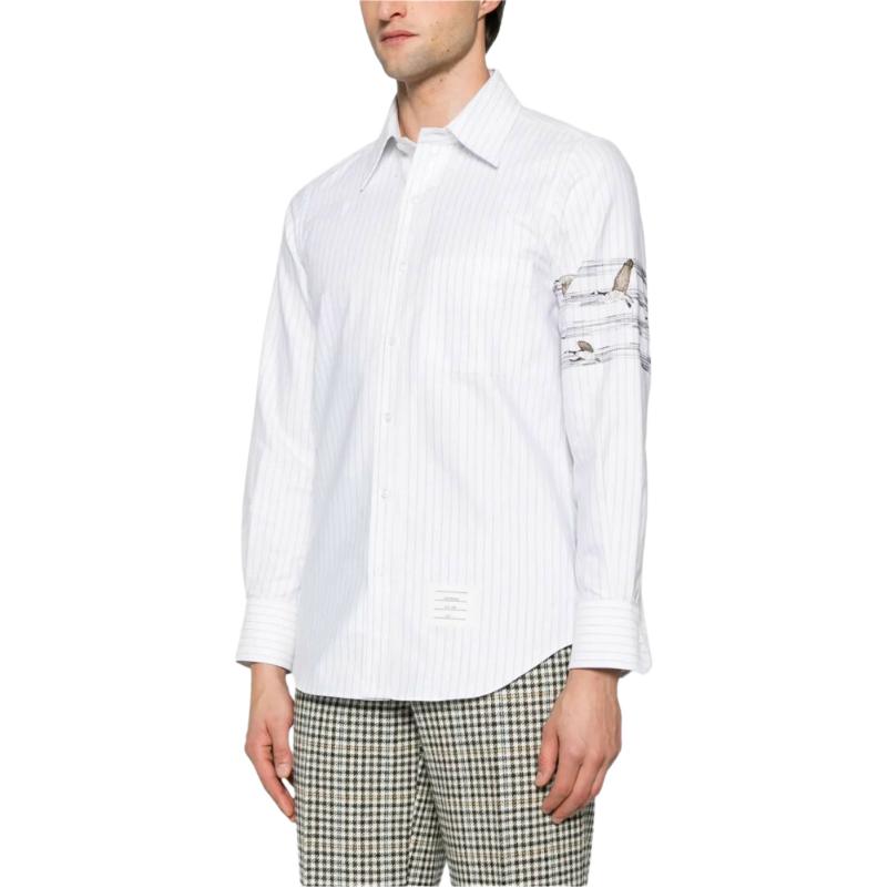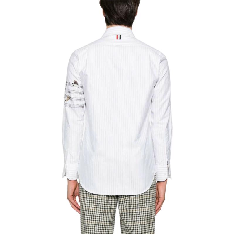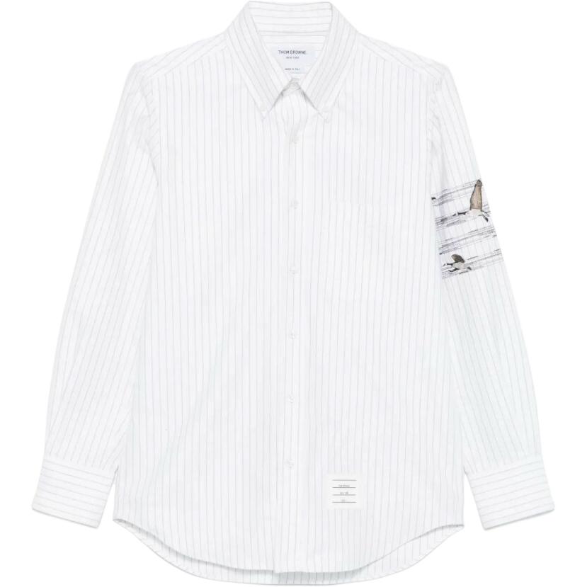Рубашка в полоску с вышивкой motif THOM BROWNE, серый