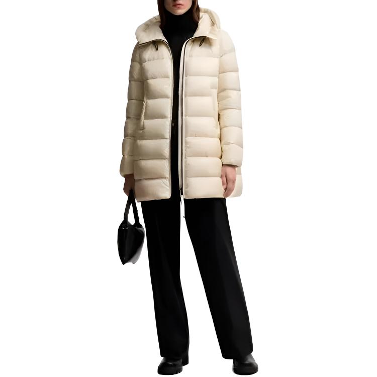 Утепленное пальто с капюшоном Moncler, светло-бежевый