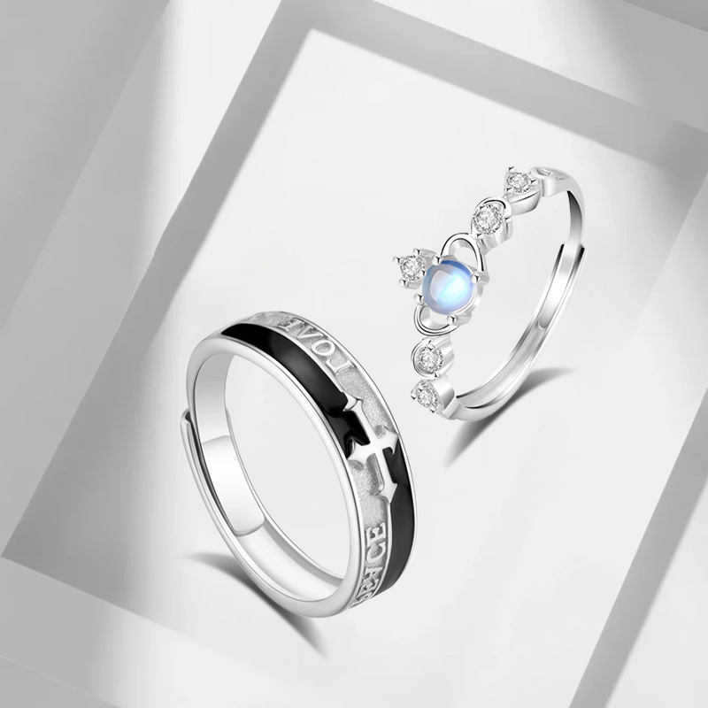 Стиль: Парное кольцо «Лунный рыцарь» - серебро 925 пробы