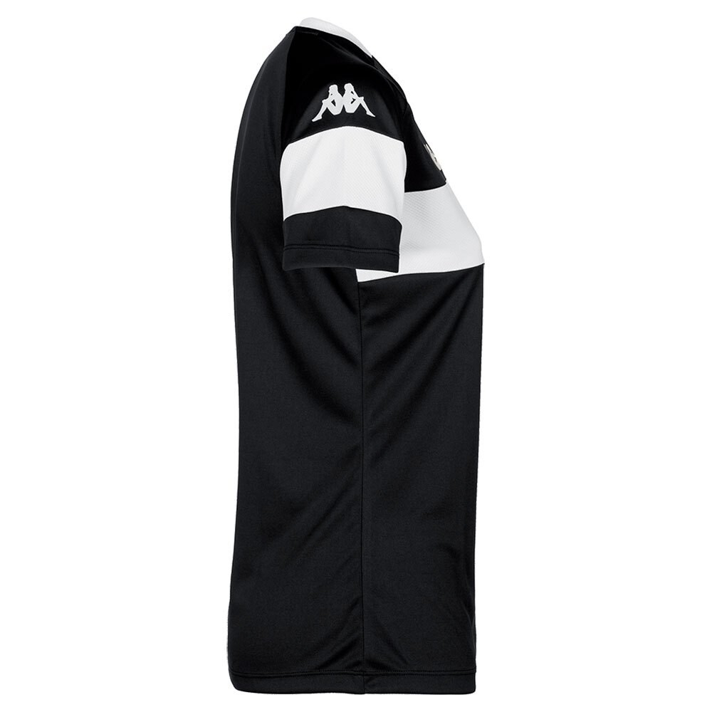 Детская футболка из 100 % полиэстера с круглым вырезом и вставками контрастного цвета спереди и на рукавах.