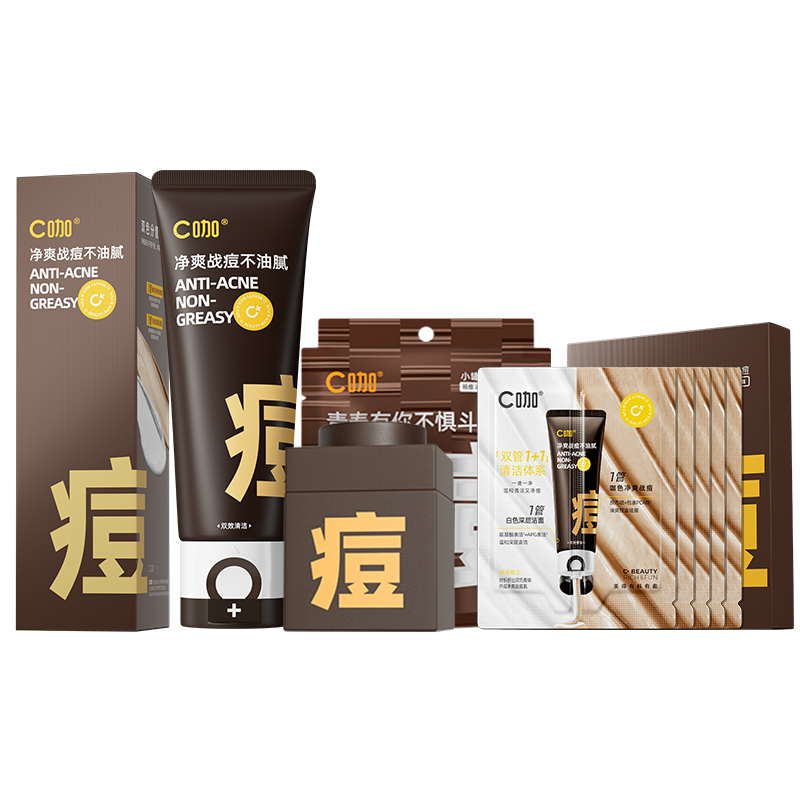 Вес нетто: 80 г очищающего средства от акне в двойном тюбике + пленка для удаления акне в маленьком тюбике*1 банка + дорожный образец
