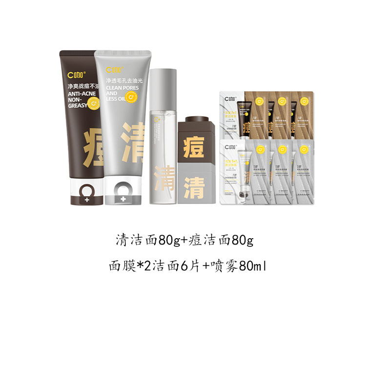 Вес нетто: очищающее средство 80 г + очищающее средство от акне 80 г + маска *2 + очищающее средство 6 шт. + спрей 80 мл