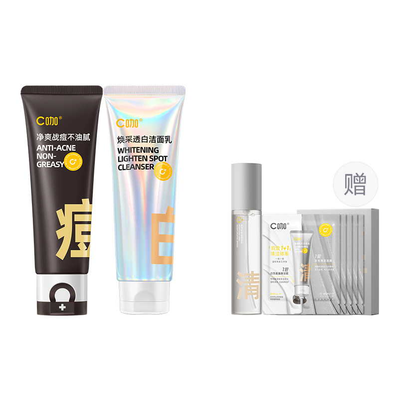 Нетто-содержание косметического средства: очищающее средство от акне 100 г + отбеливающее очищающее средство 100 г