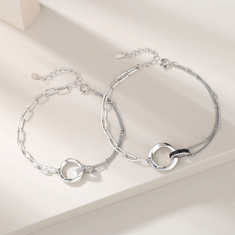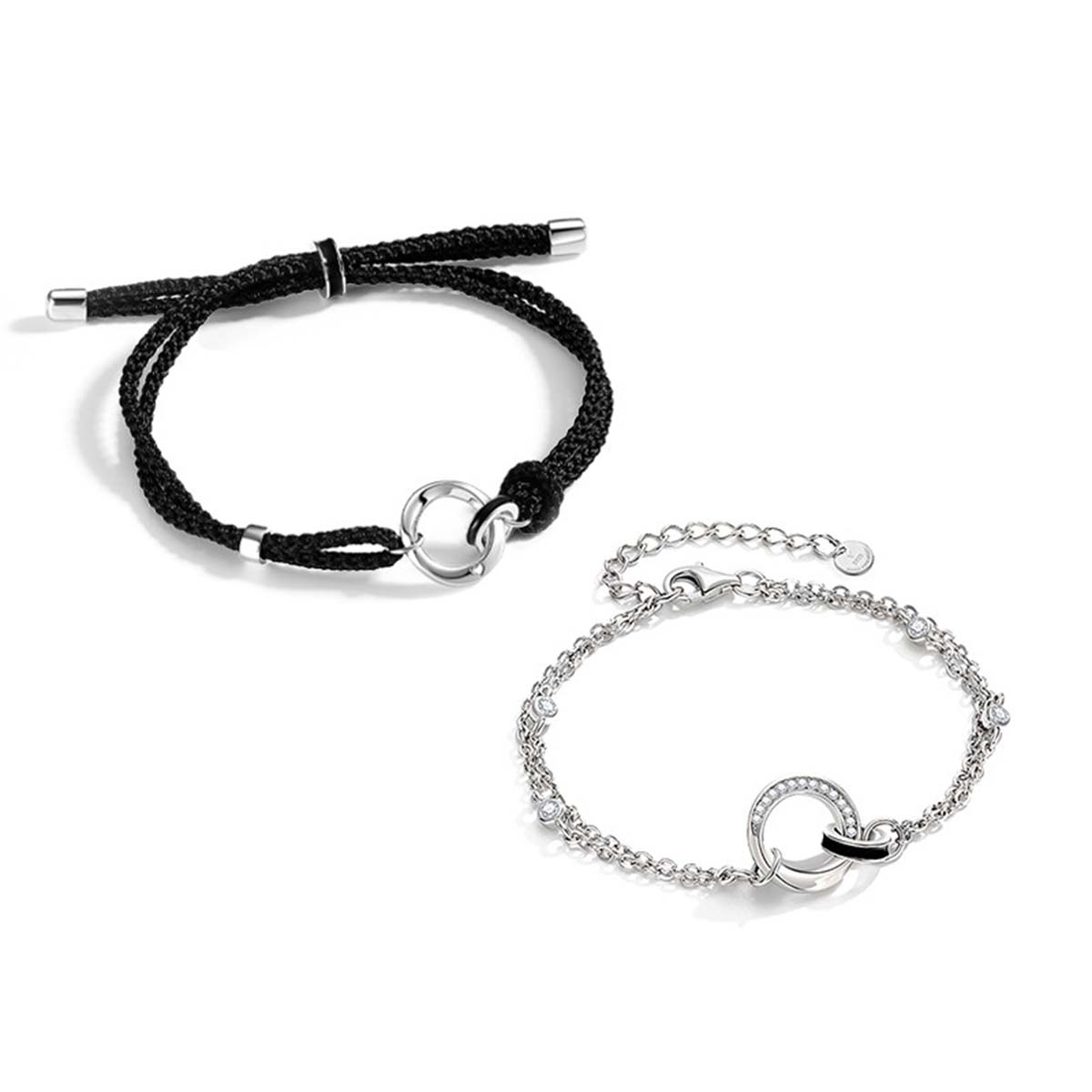 Стиль: Серебро 925 пробы - Парные браслеты со звездами и двумя кольцами