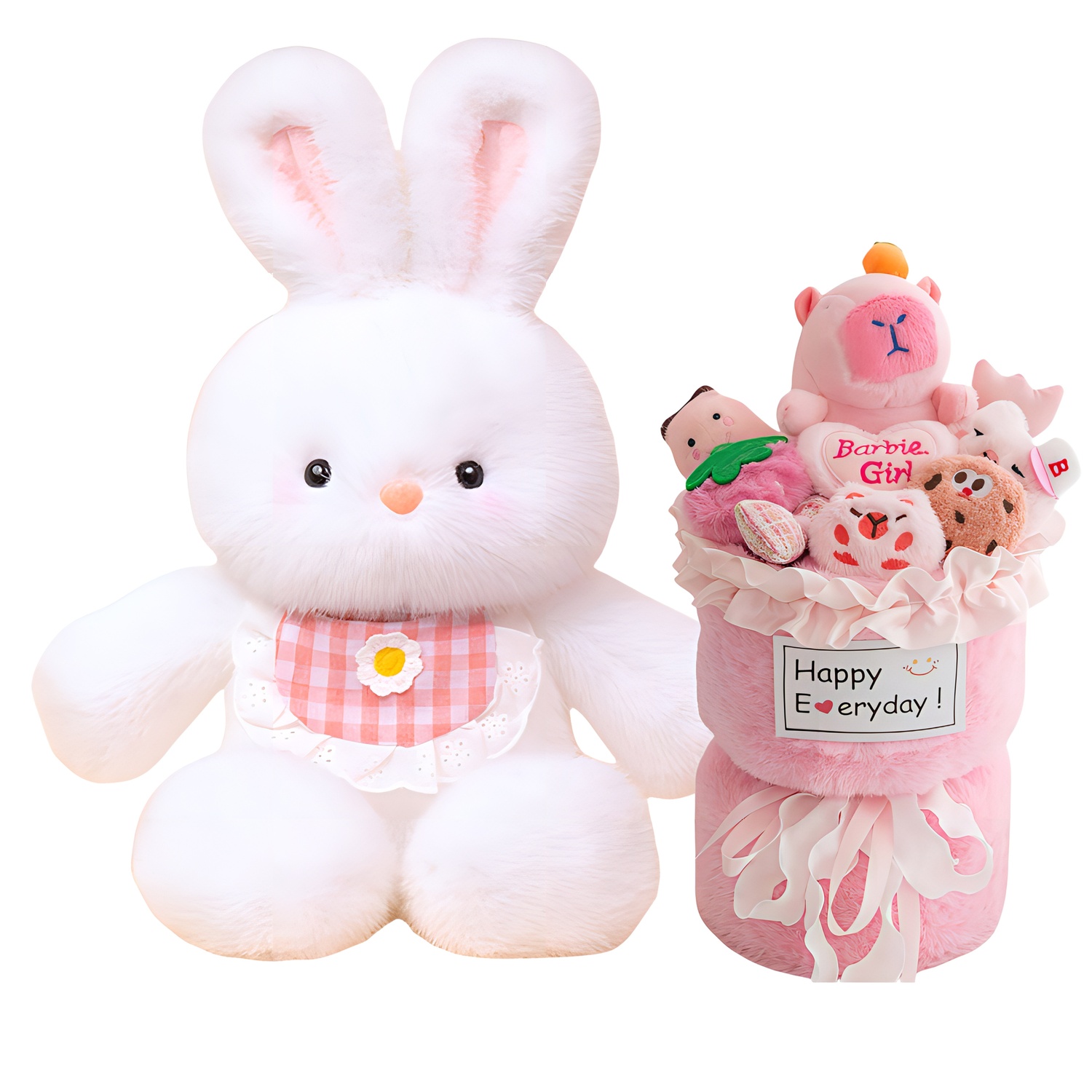 Название продукта: Беги, беги, зайчик + розовый нагрудник + букет цветов Капу