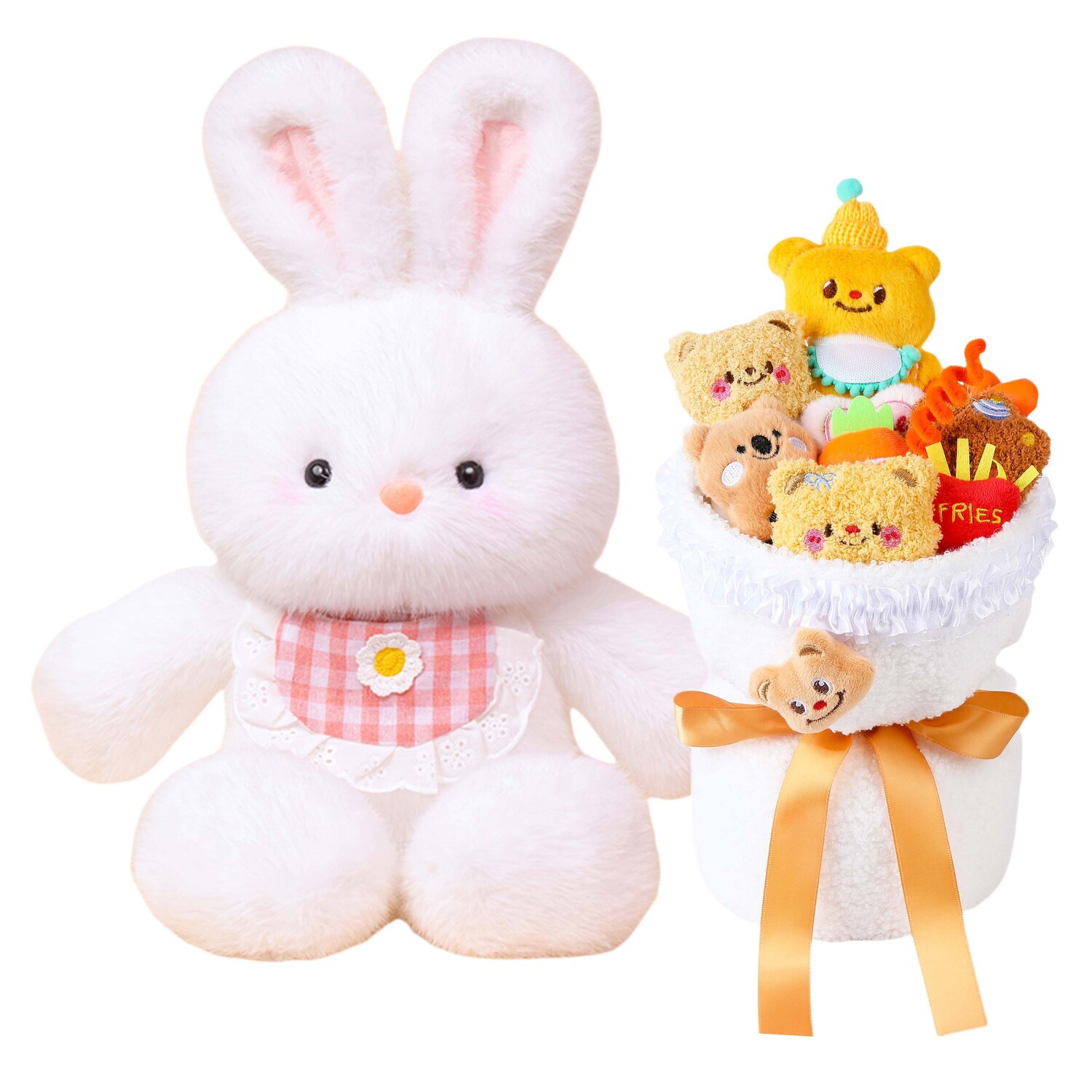 Название продукта: Бегущий заяц + Розовый нагрудник + Букет цветов с медведем