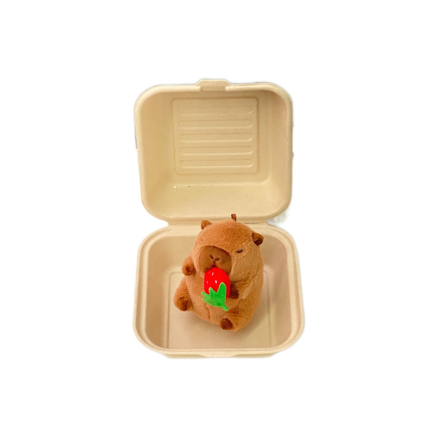 Название продукта: брелок в виде капибары, поедающей клубнику, и ее эксклюзивное гнездышко
