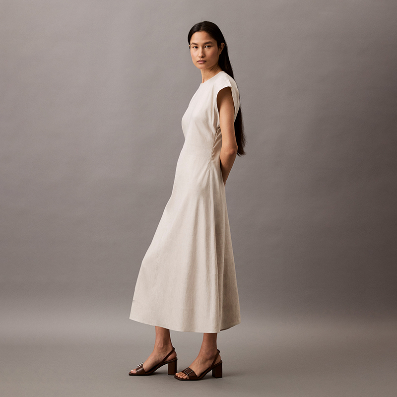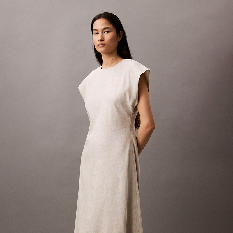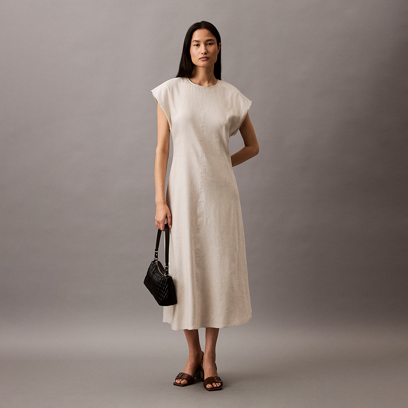 Миди-платье с вырезом "ключик" Calvin Klein, бежевый