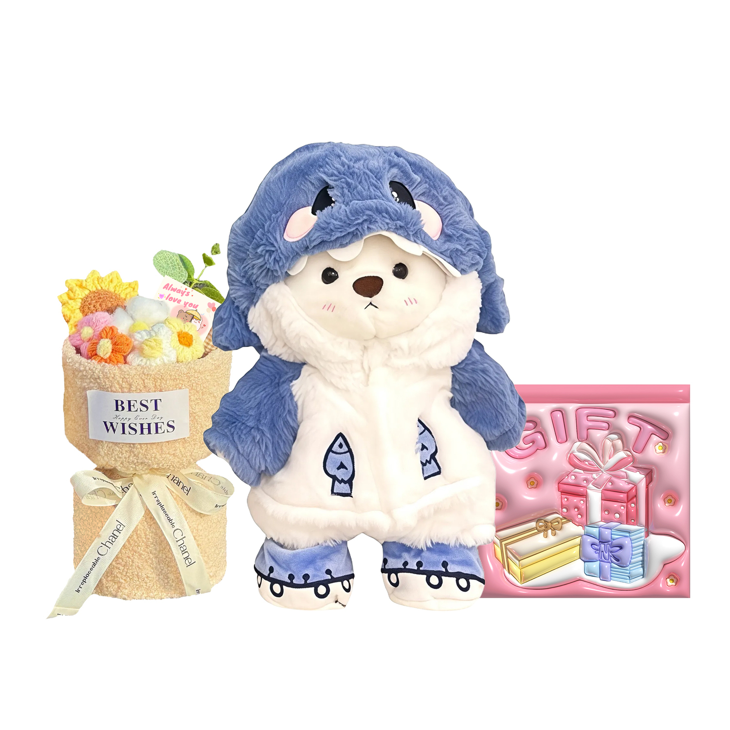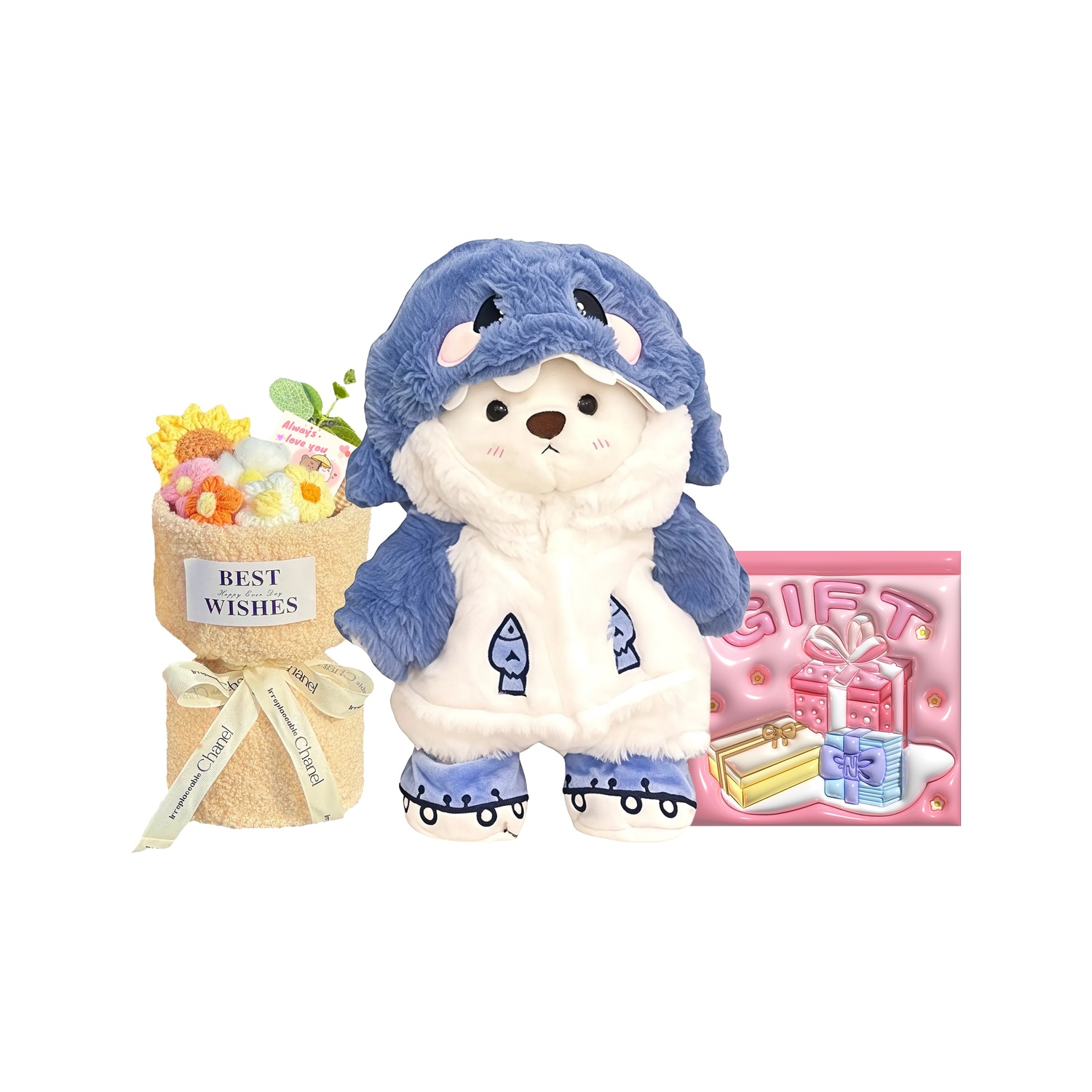 Название продукта: [Romantic Limited] Акула-медведь + Романтический букет + Открытка с признанием в любви