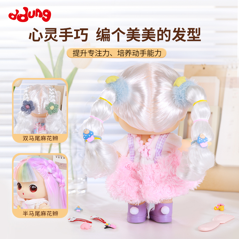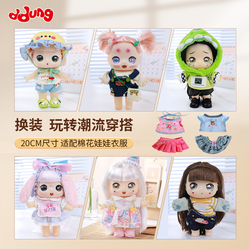 Кукла Dongji Cotton Candy - это кукла ручной работы, созданная своими руками. Ее белые волосы можно раскрасить пудрой и маркерами, а макияж лица можно изменить по вашему вкусу. Размер 20 см позволяет легко наряжать ее в хлопковую одежду, а ее густые волосы можно укладывать по вашему вкусу. Основной принцип серии Dongji Cotton Candy - предоставление широкого разнообразия игровых возможностей.