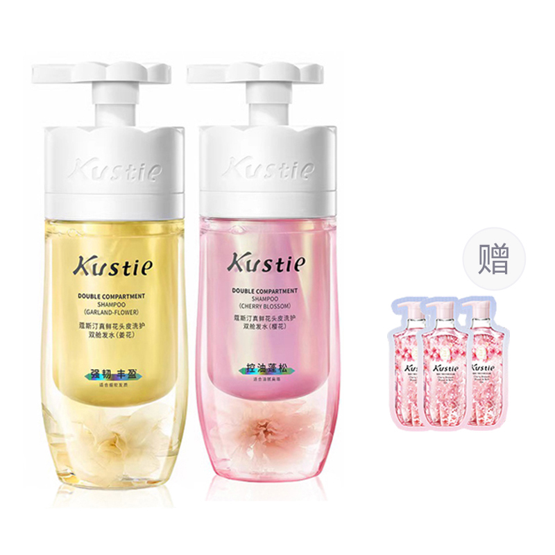 Объем: 【Длительная мягкость】Двойной шампунь для волос (цветы вишни + роза) 500 г*2