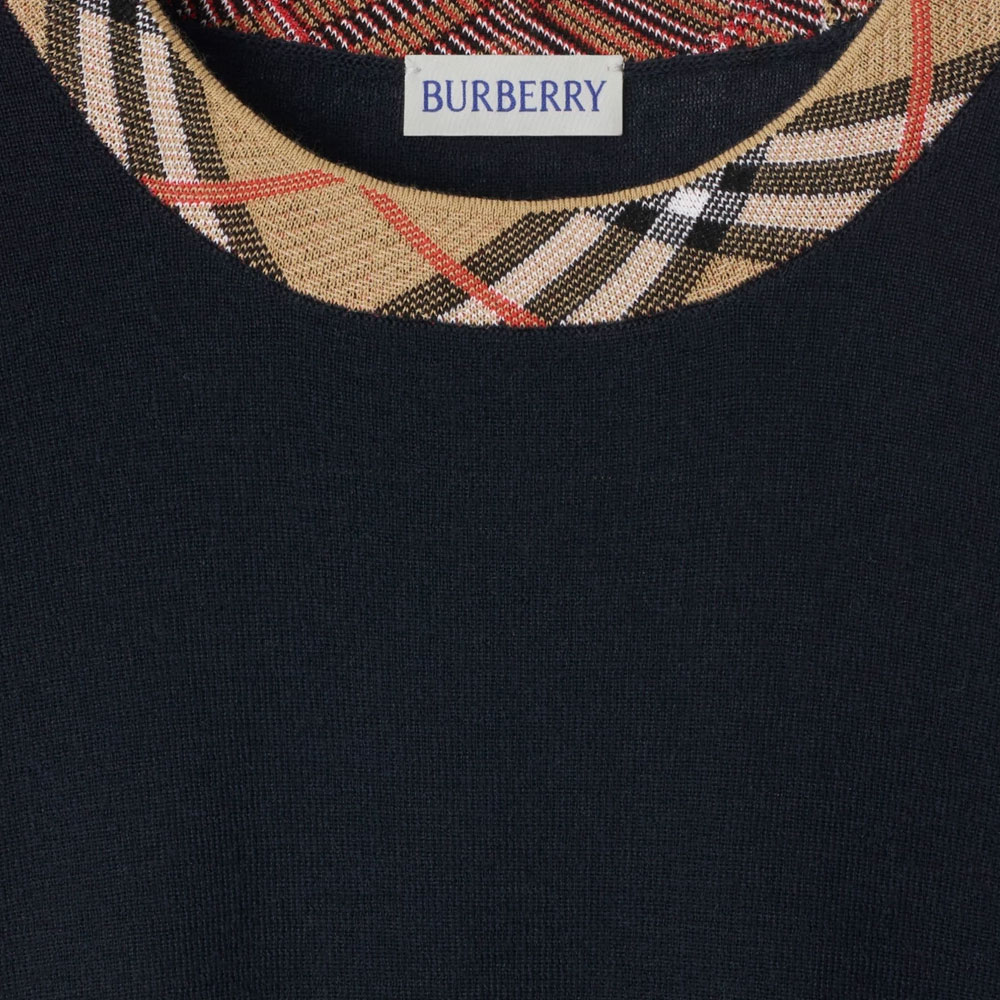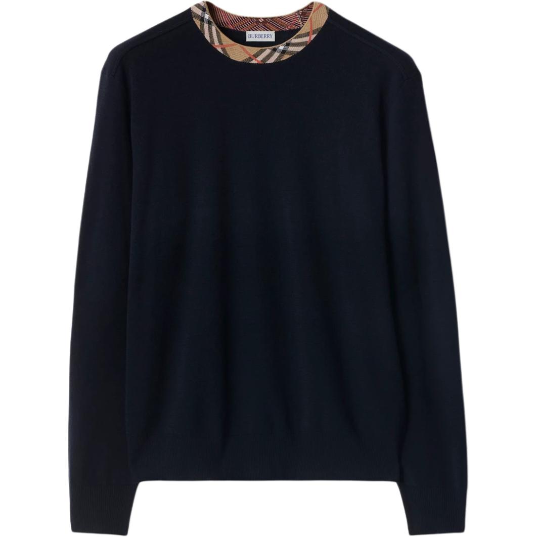 Шерстяной свитер с отделкой в клетку Burberry, синий