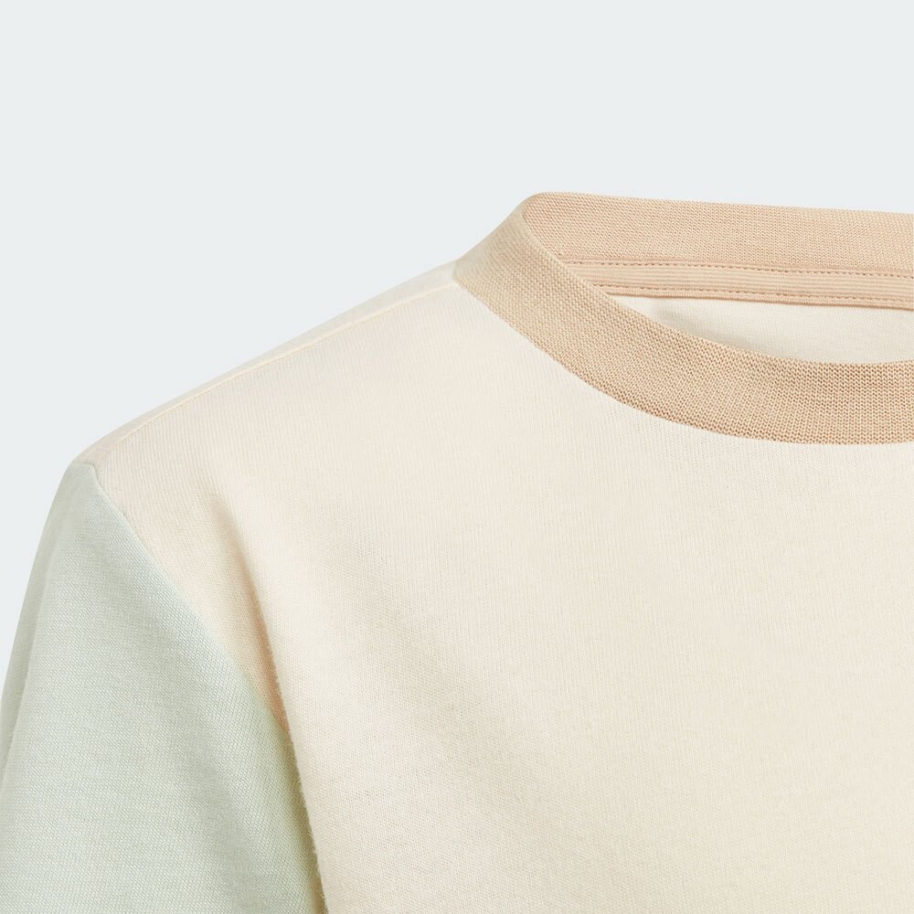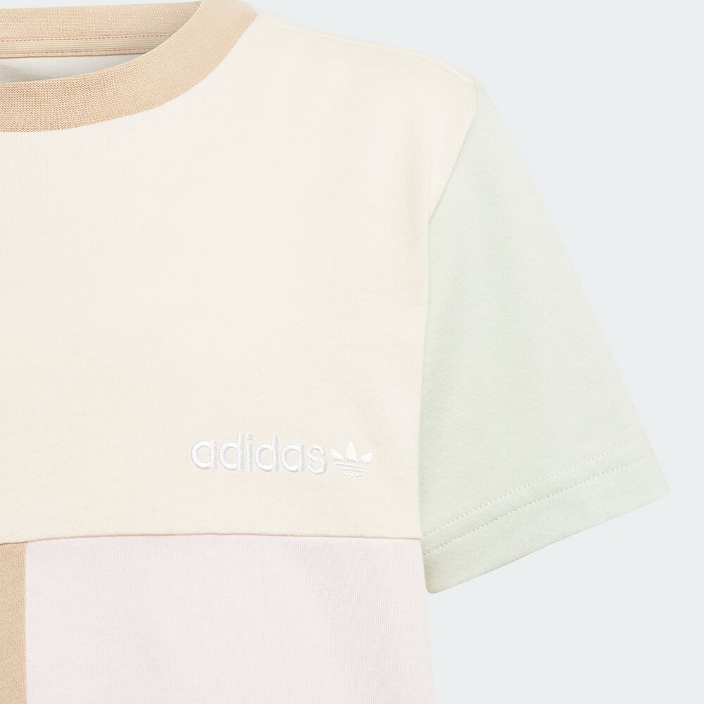 Пастельные тона расцветают в этой детской футболке adidas с геометрическим разделением, подчеркивающим нежные, успокаивающие оттенки.