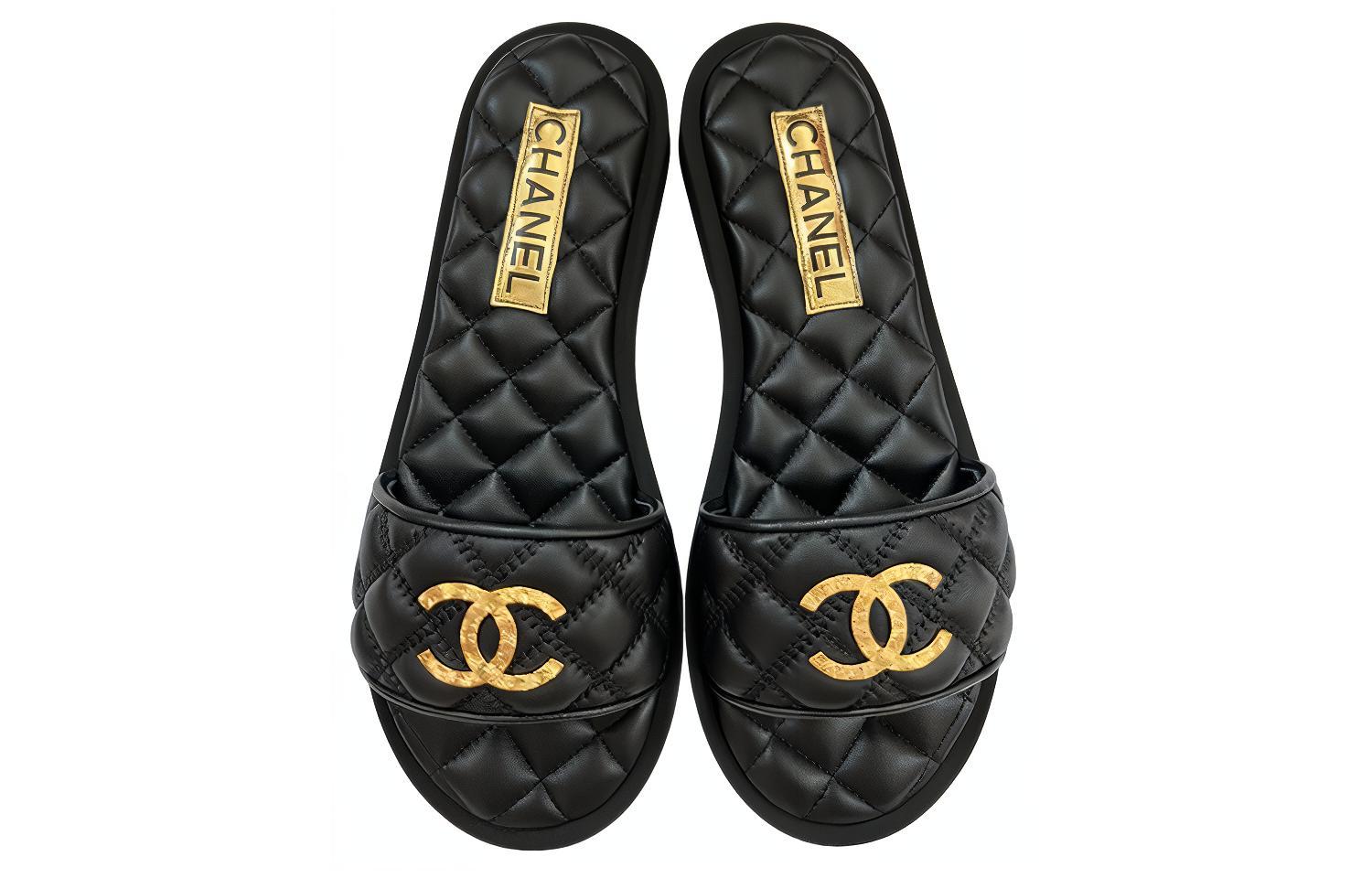 CHANEL Женские черные сандалии Slide