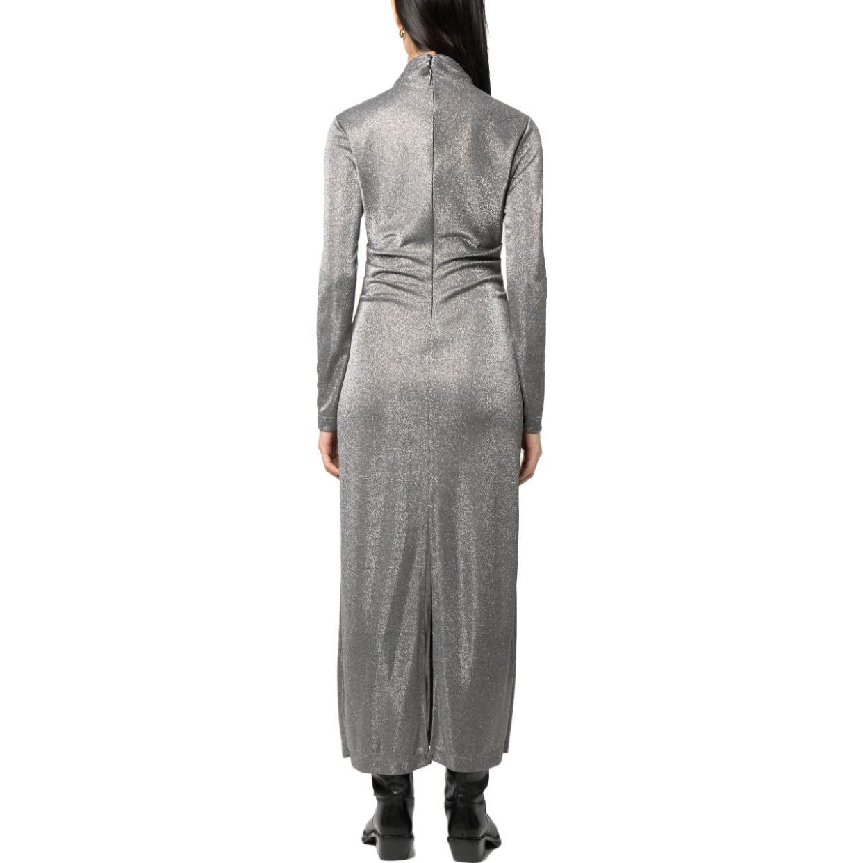 Люрекс платье макси с высоким воротником MSGM, серый