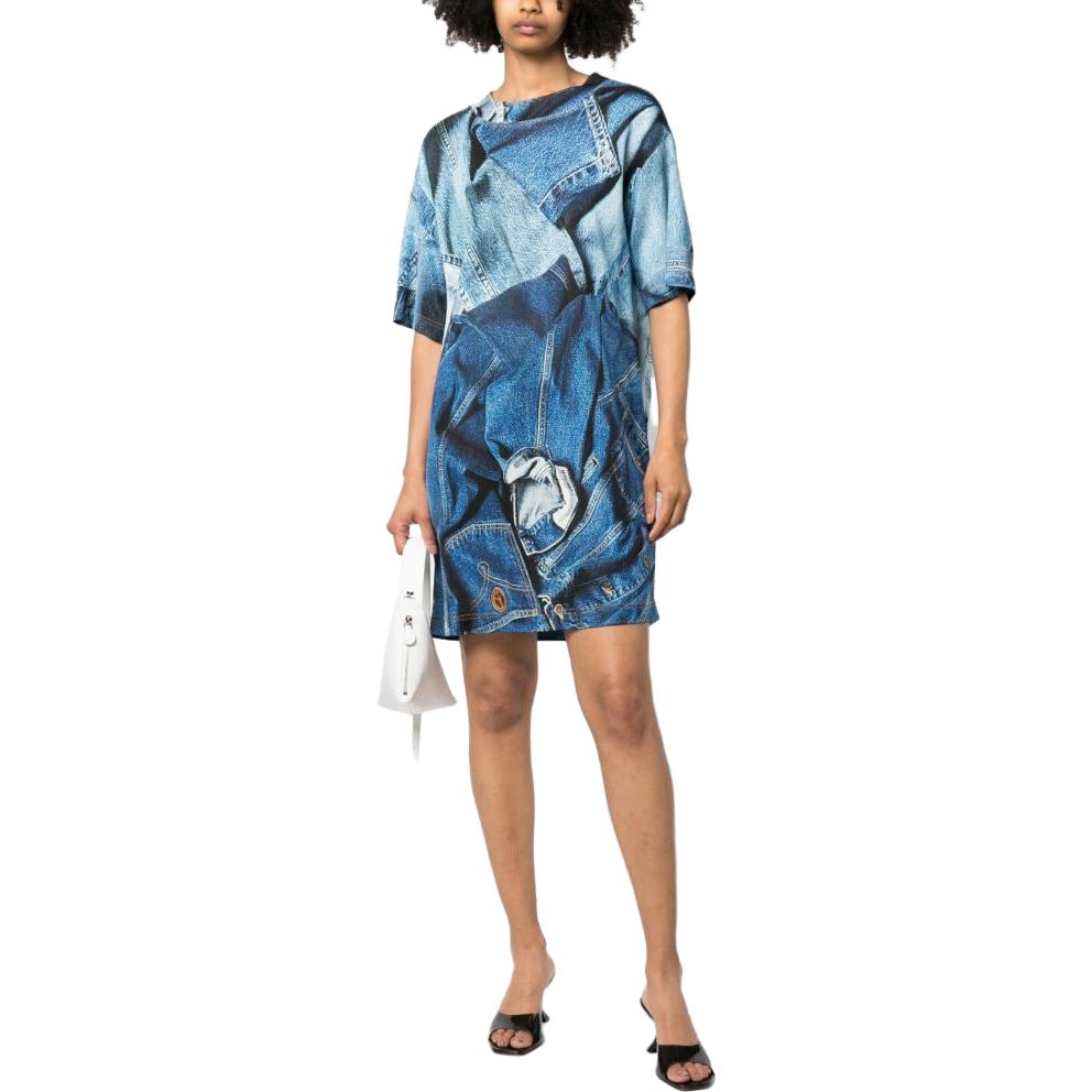 Футболка-платье с принтом под джинсы MOSCHINO, синий