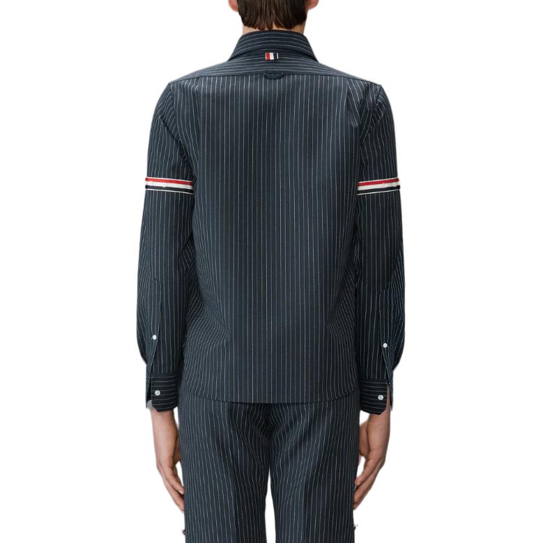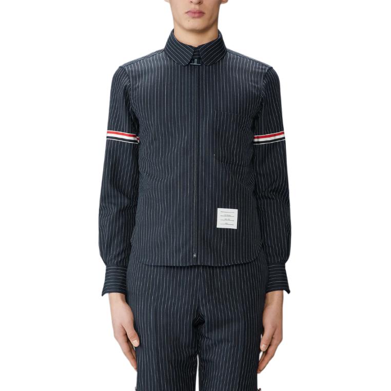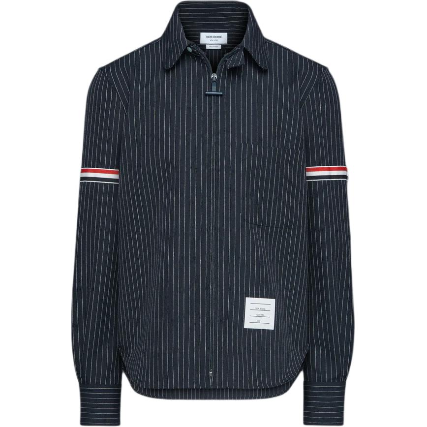 Рубашка в полоску на молнии THOM BROWNE, темно-синий