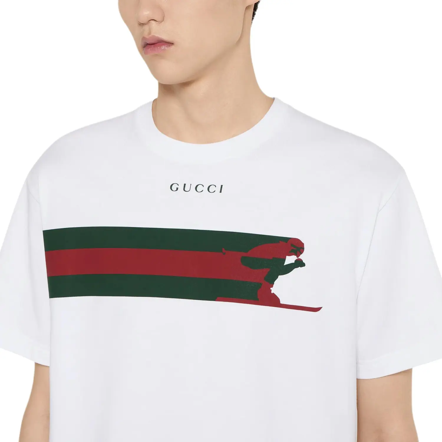 Футболка из хлопкового джерси с принтом GUCCI, белый