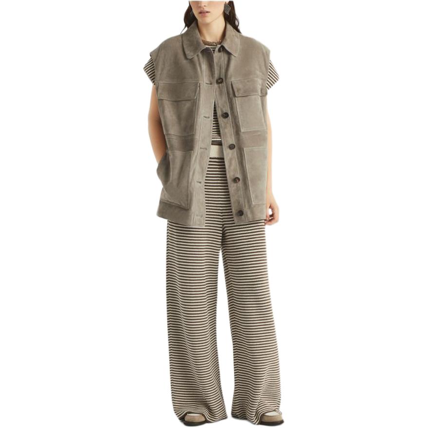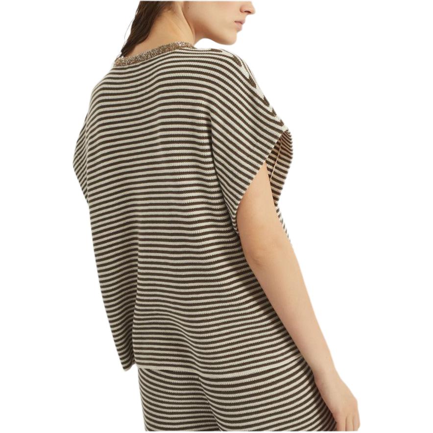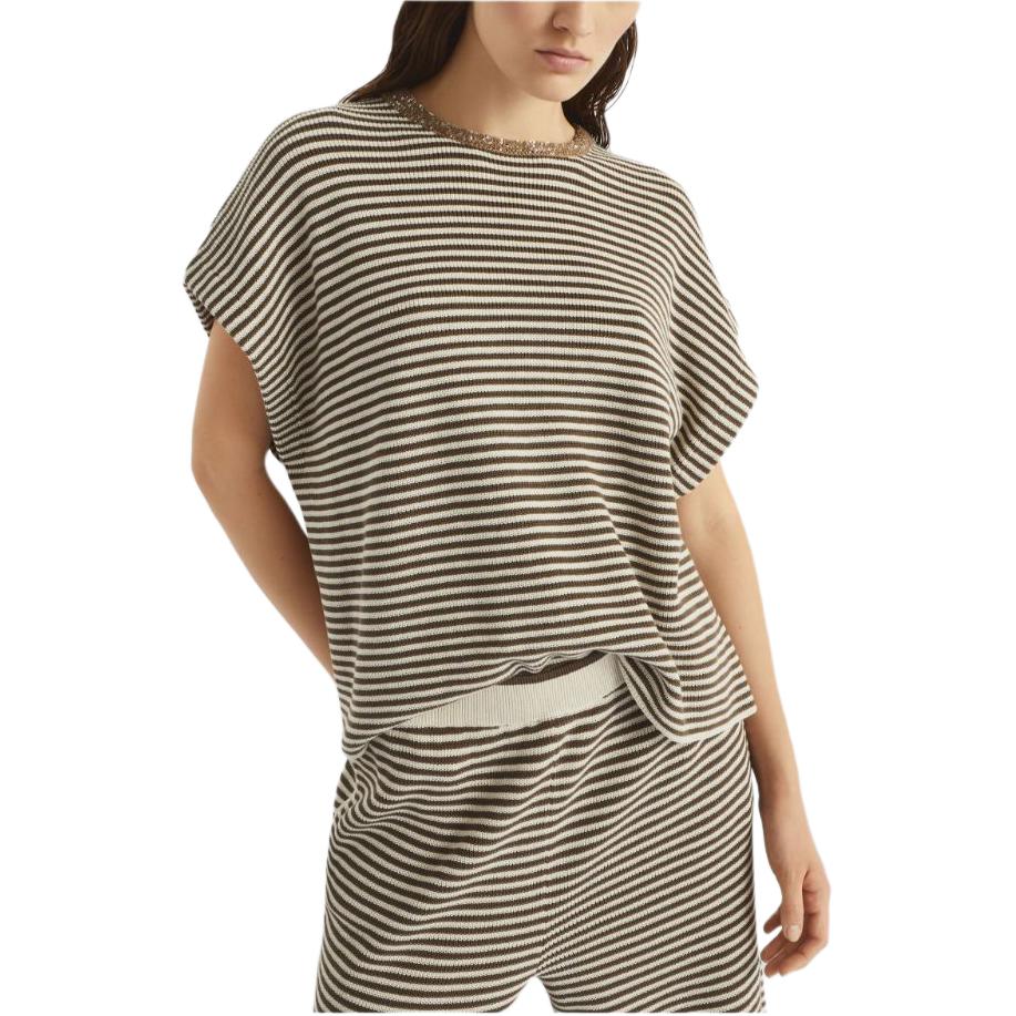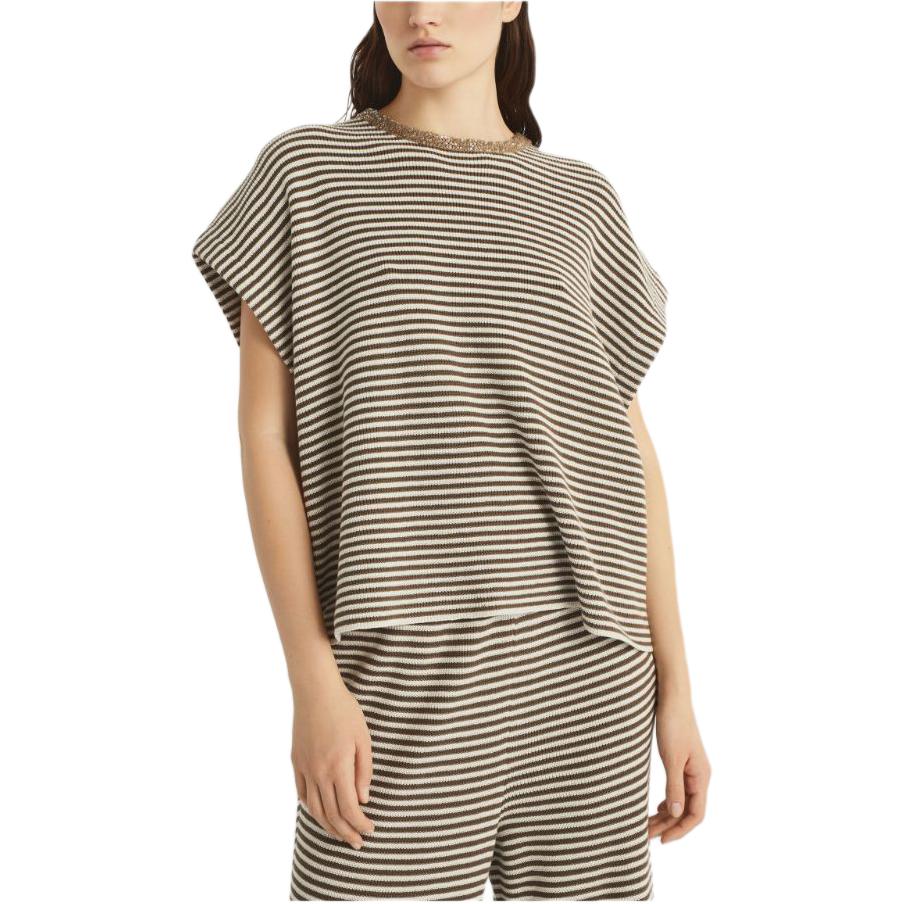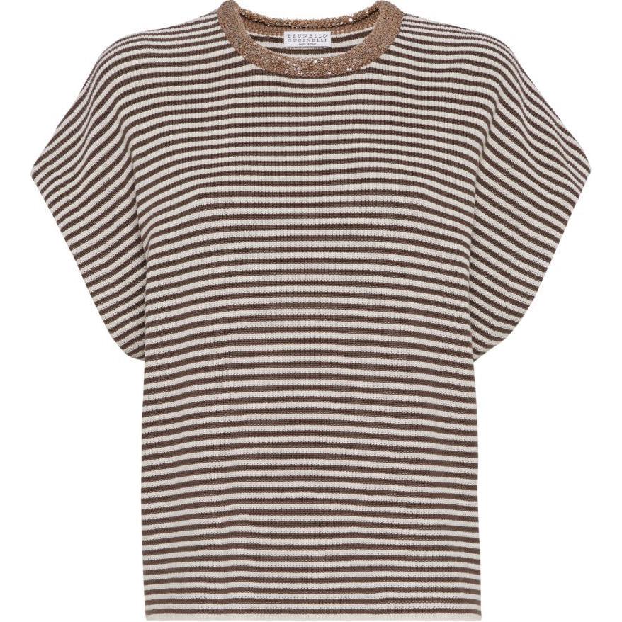 Полосатый трикотажный топ Brunello Cucinelli, Coffee