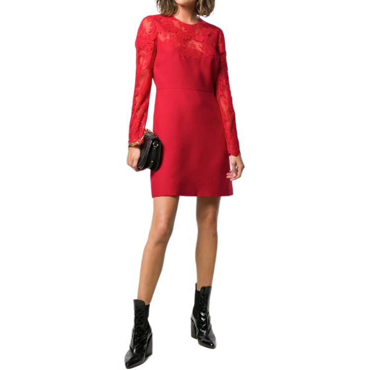 Valentino Женское красное платье с длинными рукавами