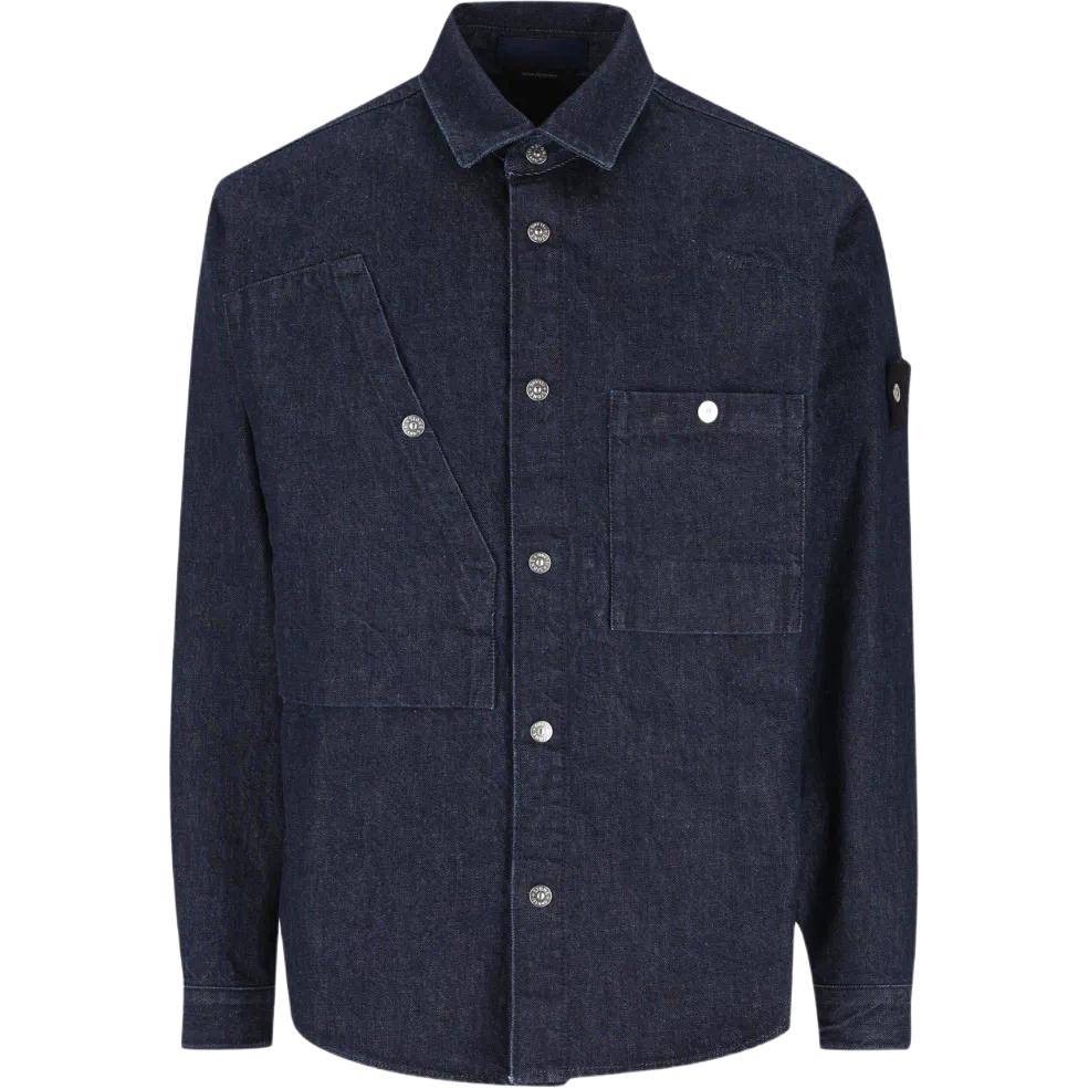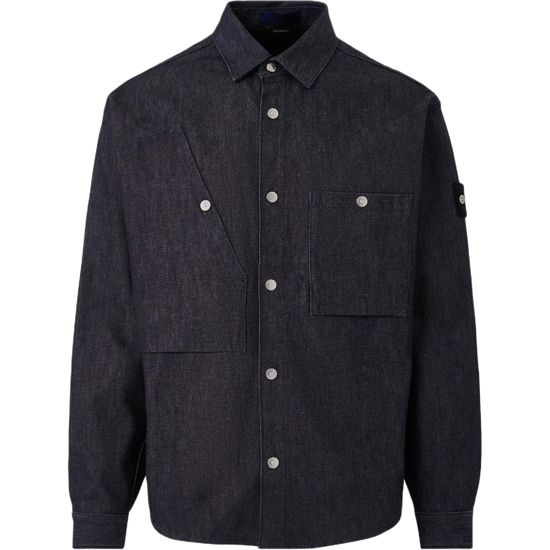 Хлопковая джимовая рубашка STONE ISLAND, темно-синий