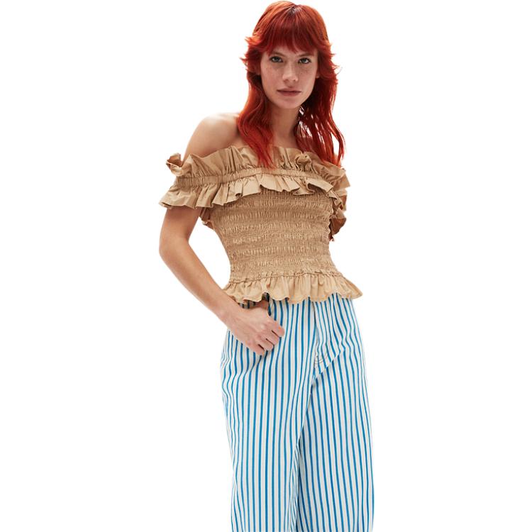 GANNI Женский топ-кроппер Milk Brown