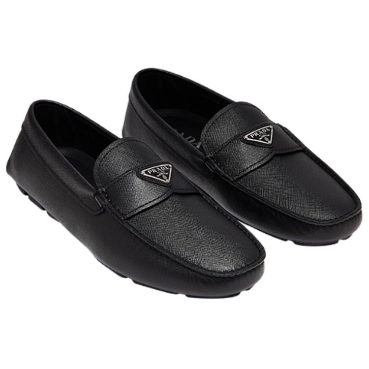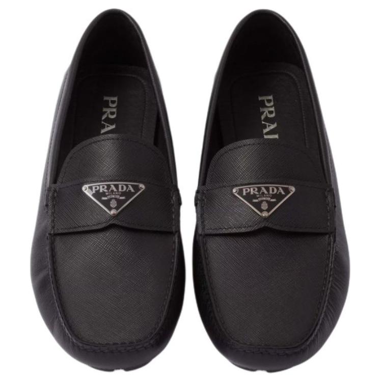 Кожаные лоферы с треугольным логотипом PRADA, черный