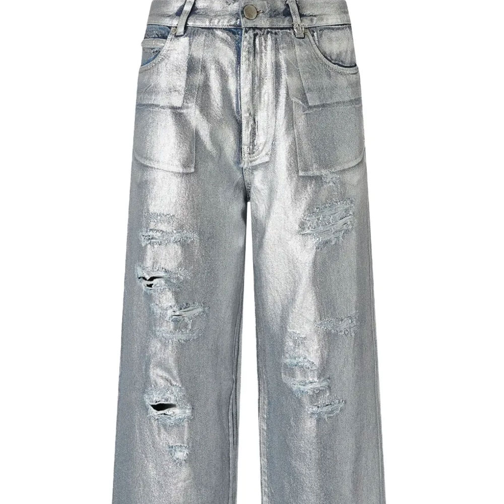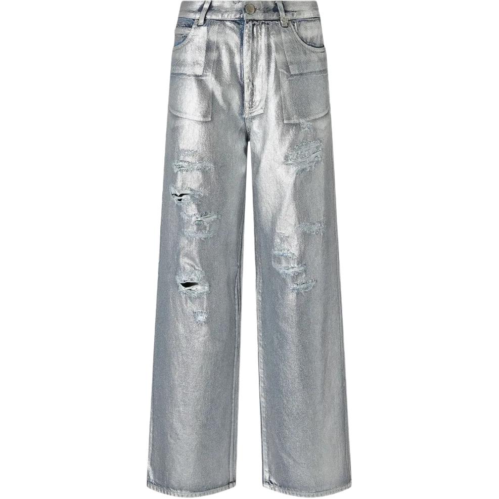 Джинсы металлик с эффектом потертости PINKO, серебро