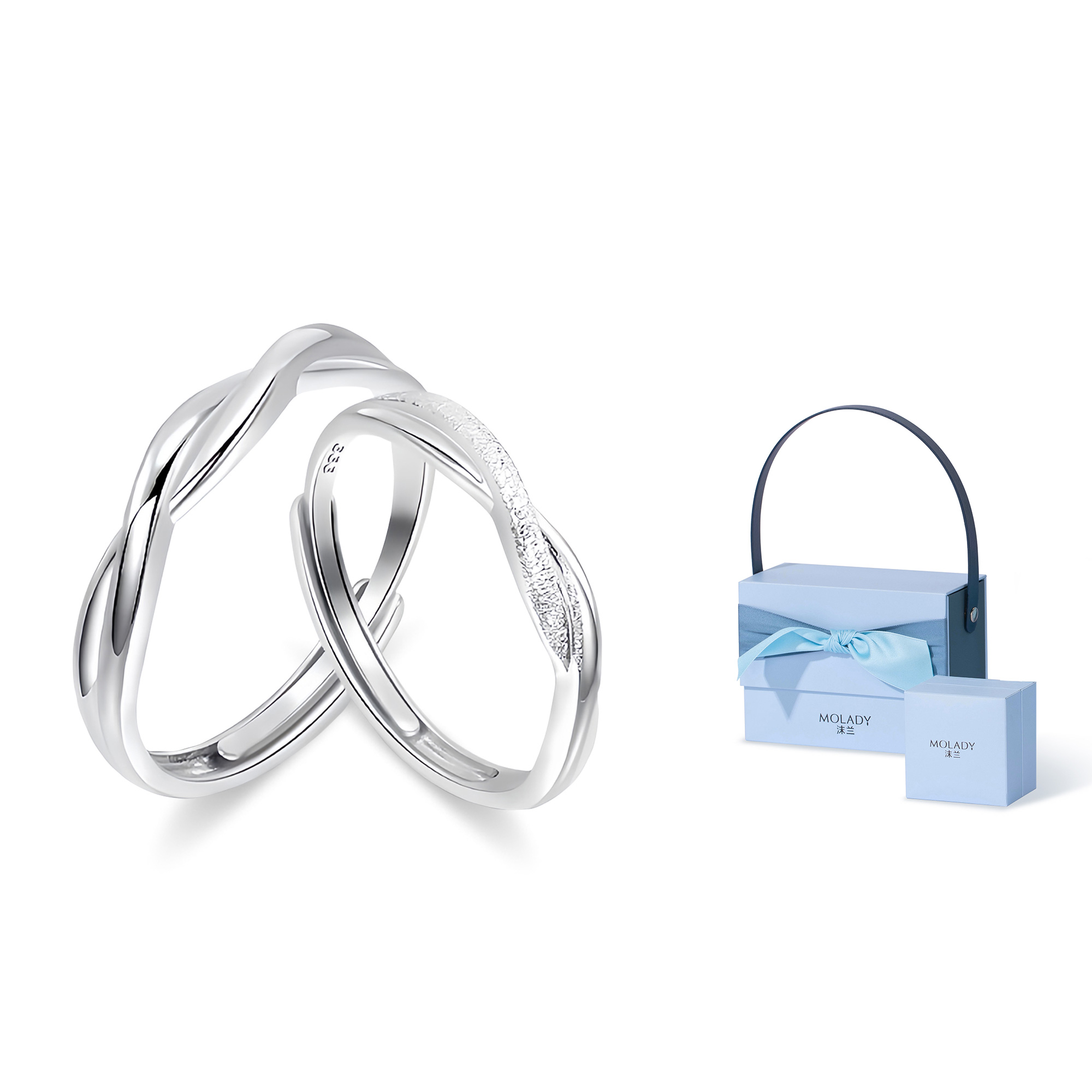 Цвет: чистое серебро 999 пробы, парные кольца «Бесконечная любовь» [коробка с синей бабочкой]
