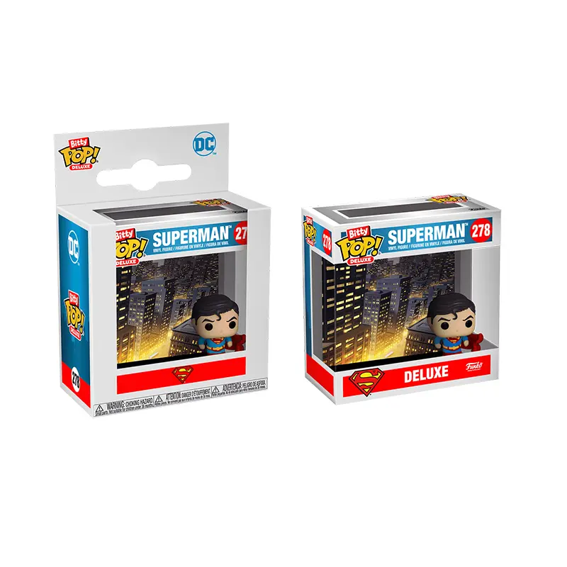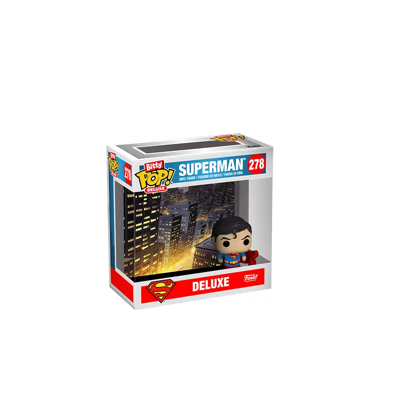 Расширьте свою коллекцию DC эксклюзивной фигуркой Супермена Делюкс Мини Поп! Эта фигурка Супермена Мини Поп! поставляется в жестком акриловом футляре, который дополняет городской пейзаж! Фигурка Мини Поп! закреплена на акриловом основании и может быть извлечена из футляра. В футляре также есть дополнительное место для добавления другого любимого персонажа Мини Поп! в вашу коллекцию! Смешивайте и сочетайте по своему вкусу, количество комбинаций безгранично! Высота этой виниловой фигурки составляет около 0,9 дюйма (2,3 см). Размеры акрилового футляра: ширина - около 2,5 дюйма, высота - 2,4 дюйма, глубина - 1,25 дюйма.