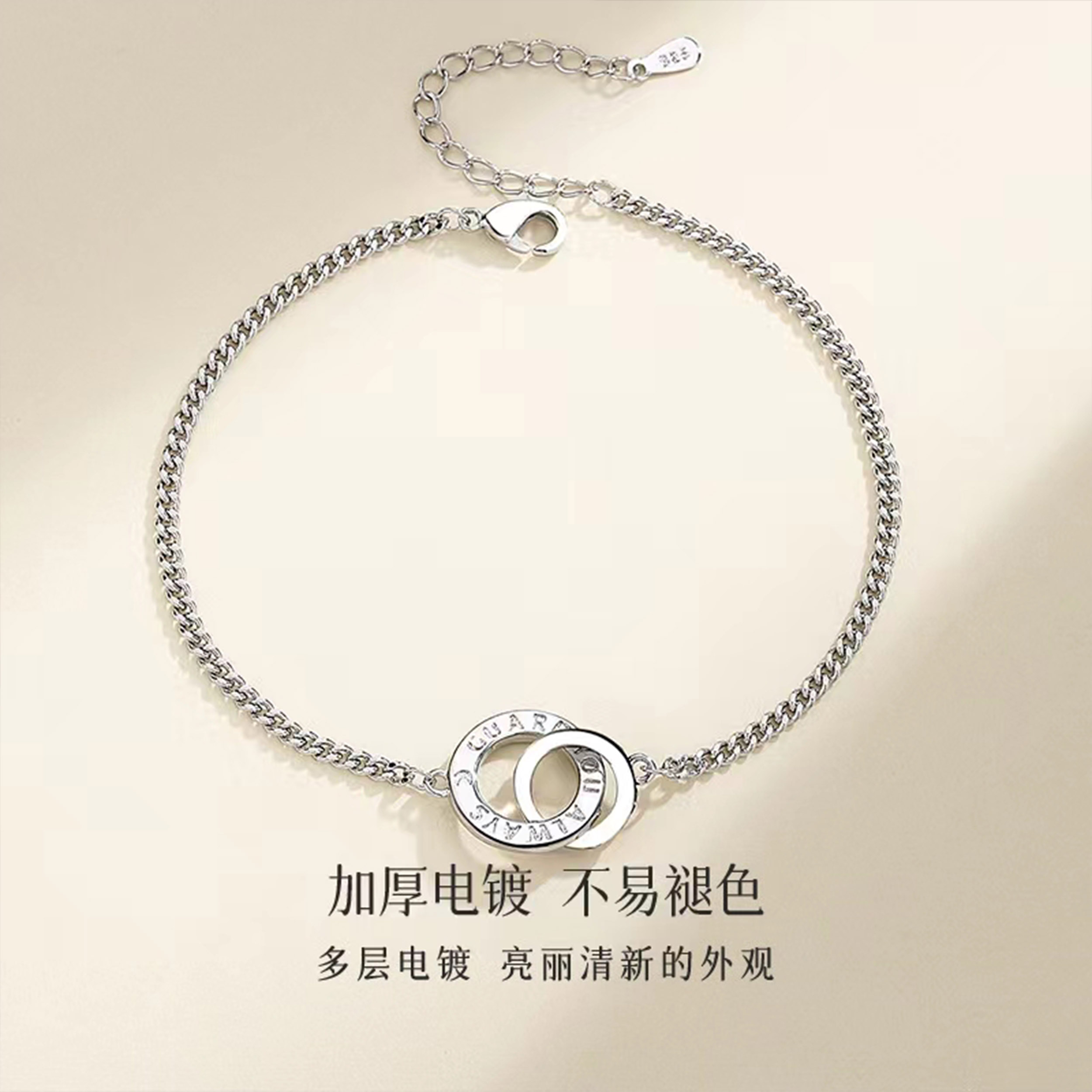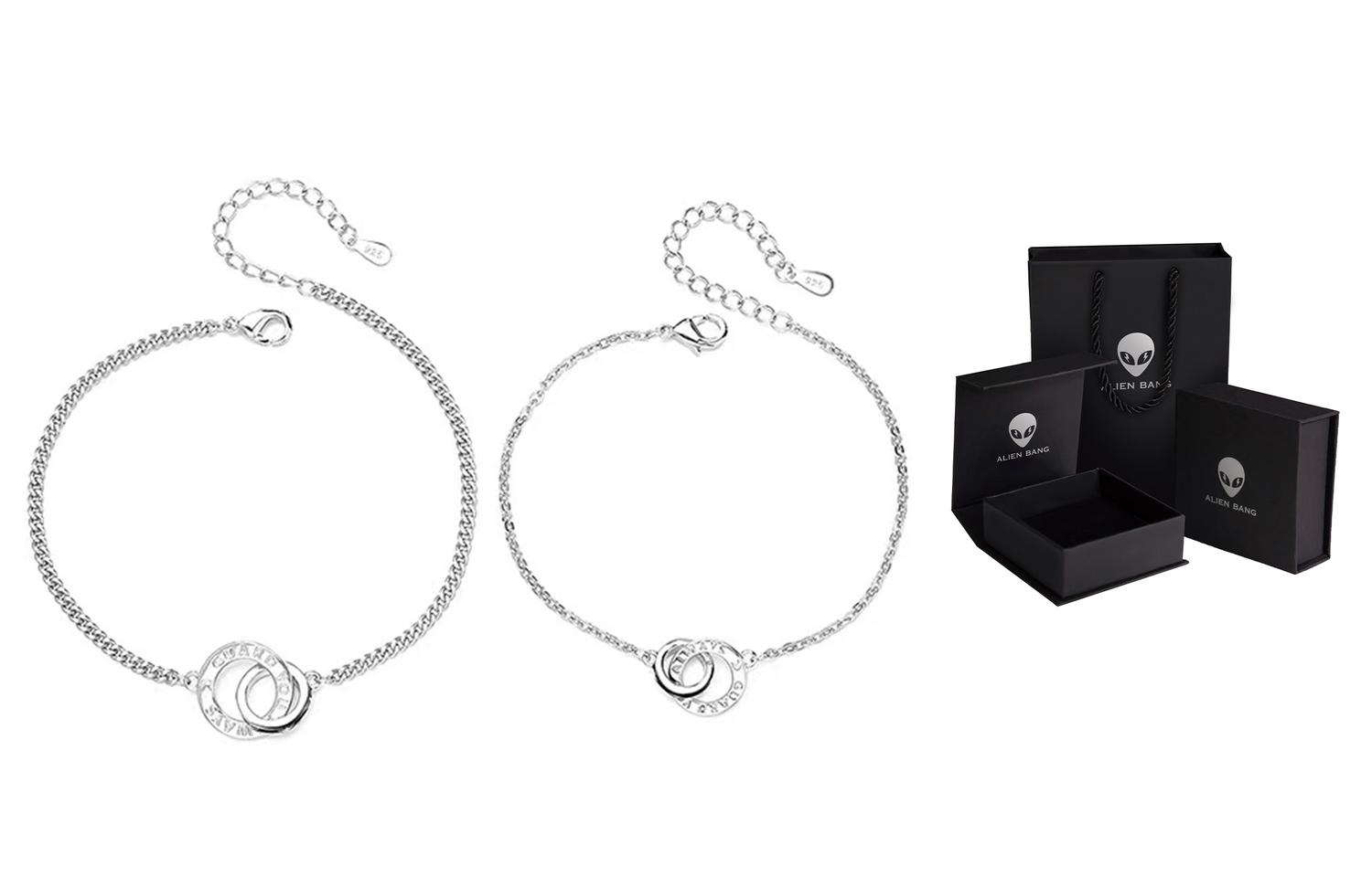 Характеристики: Браслет с двумя переплетенными кольцами в бархатной подарочной коробке