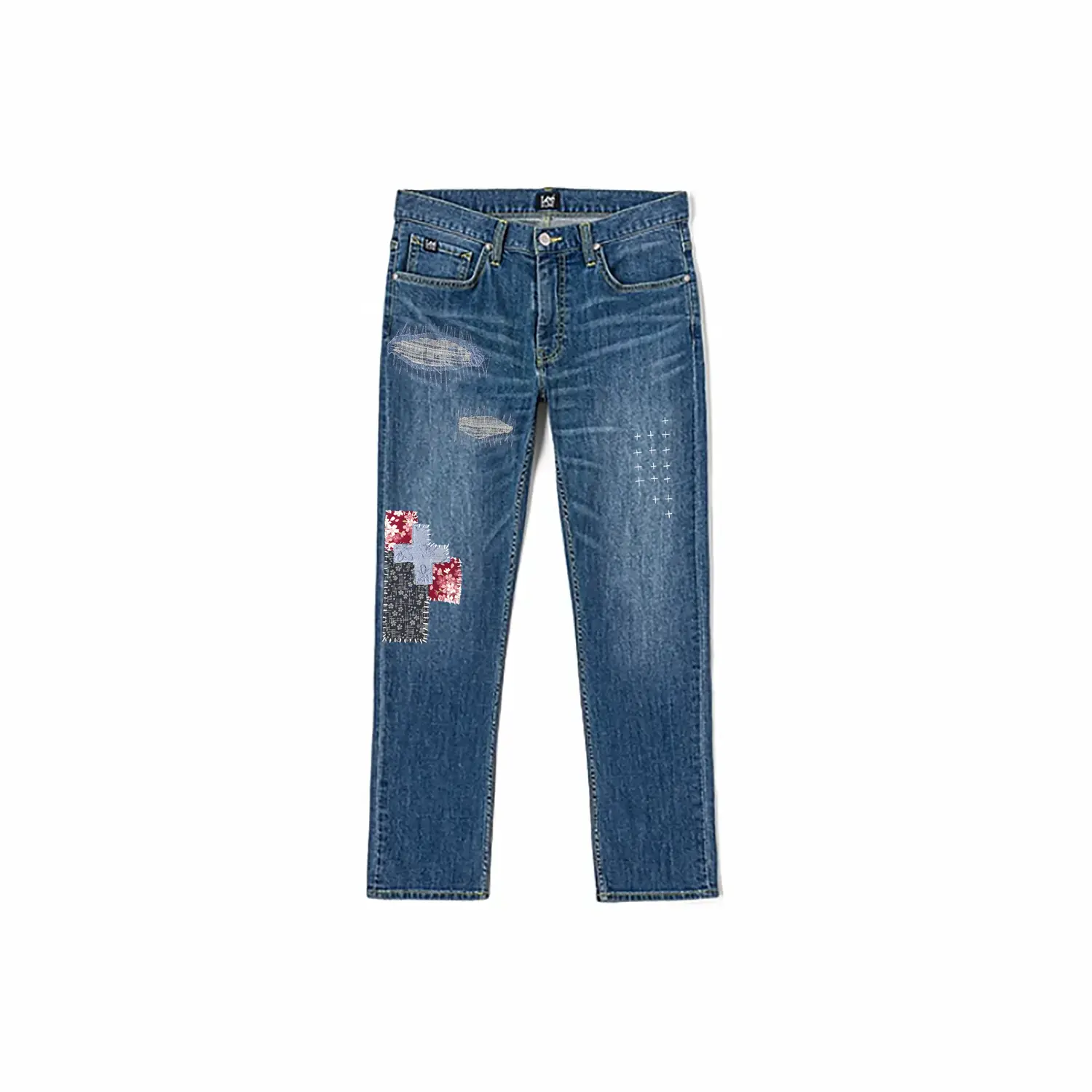 Этот сшитый на заказ предмет одежды представляет собой стандартные прямые мужские джинсы Lee FW23 726 светло-голубого цвета. Артикул LMB1007263QJ00FA05571, дополнительный артикул LMB1007263QJ00FA08286. Оригинальный рисунок выполнен в стиле винтажного пэчворка с узором пейсли, с различной степенью и рисунком потертостей, добавляющих глубину. Это придает модный, трендовый вид уличного стиля, делая его уникальным и значительно снижая вероятность того, что кто-то наденет такой же наряд. Расположение рисунка может незначительно отличаться от модели к модели. Из-за особенностей производственного процесса и материалов рекомендуется избегать контакта с острыми предметами, длительного замачивания и сушки при высоких температурах.