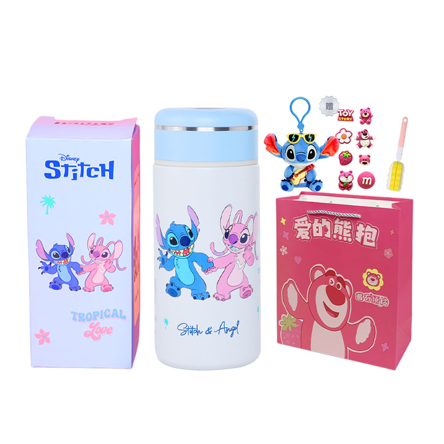 Набор: термостаканчик Stitch + сумка для покупок + кукла [включает щетку для стаканчика + наклейки]