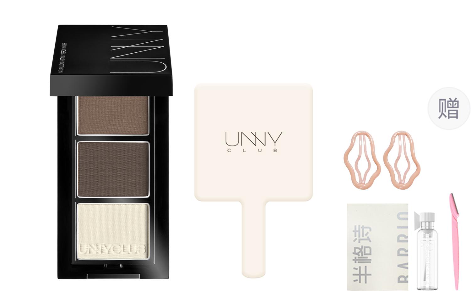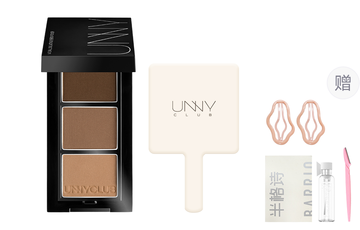 Характеристики: [Набор из пудры для бровей Black Tea Gray + зеркальце для макияжа] Включает в себя пробник духов + заколку для волос + бритву для бровей
