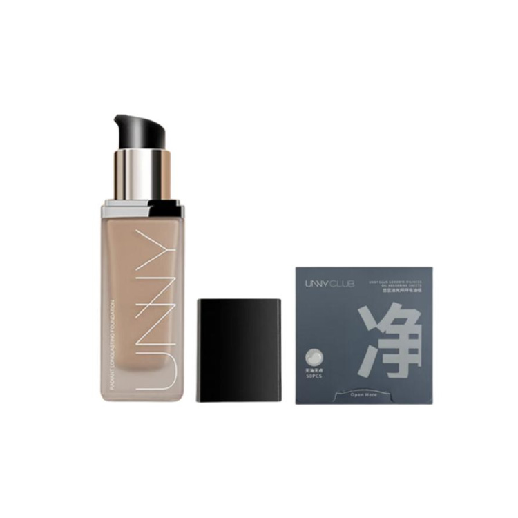 Характеристики: Набор из двух предметов: жидкая тональная основа для жирной кожи #N01 Natural Liquid Foundation 30 мл + промокательная бумага, 50 шт. в упаковке